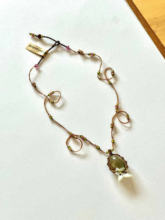 Collier Court Tibétain Améthyste Verte Fil Brun - Sharing