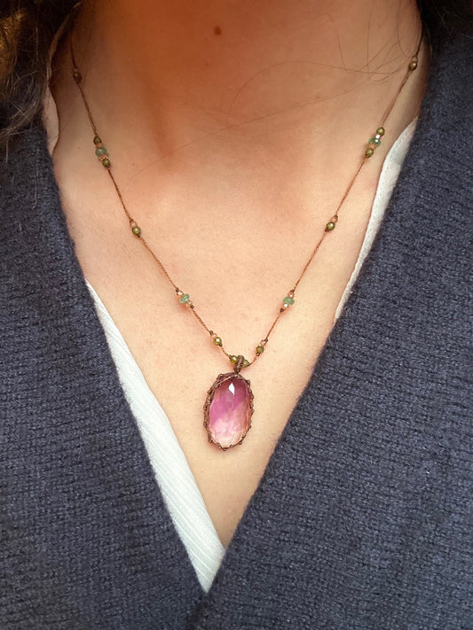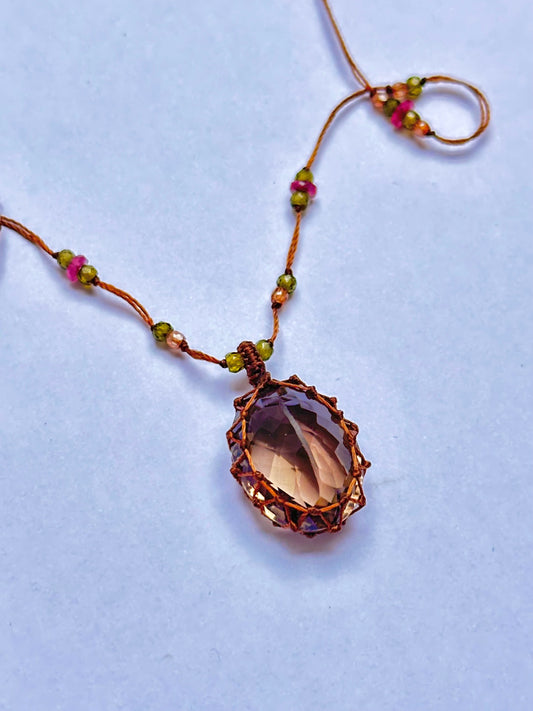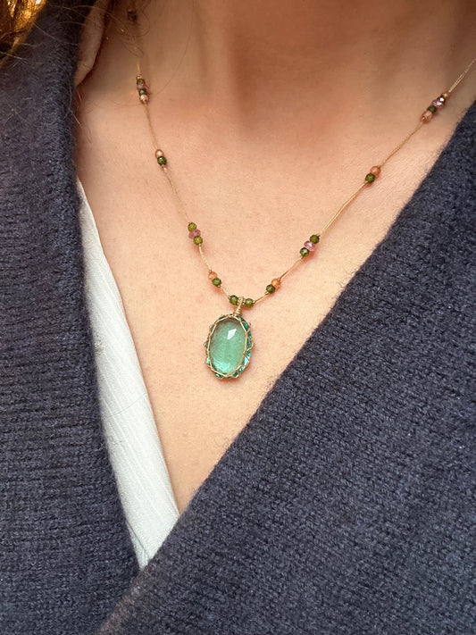 Collier Court Tibétain Améthyste Verte Fil Doré - Sharing