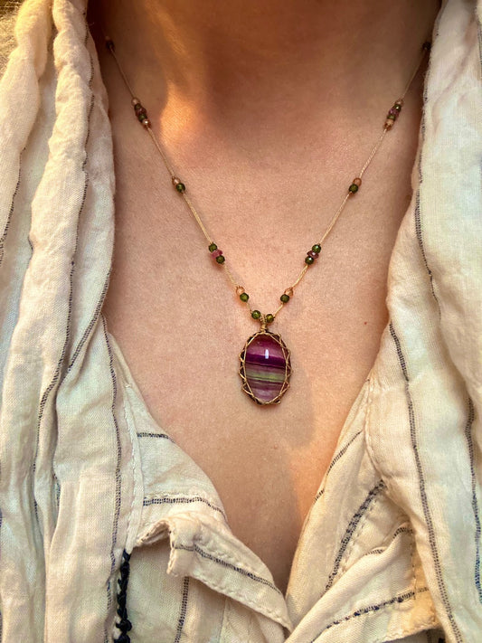 Collier Court Tibétain Fluorite Rainbow (Rare) - Sharing