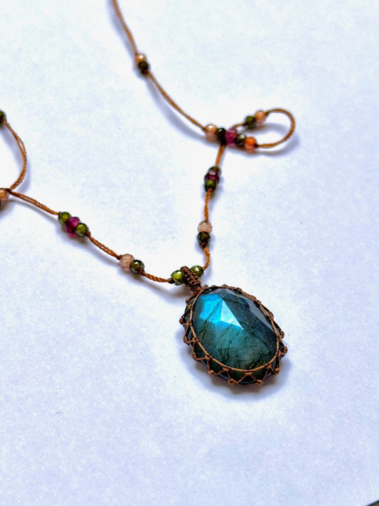 Collier Court Tibétain Labradorite Blue Fire - Sharing