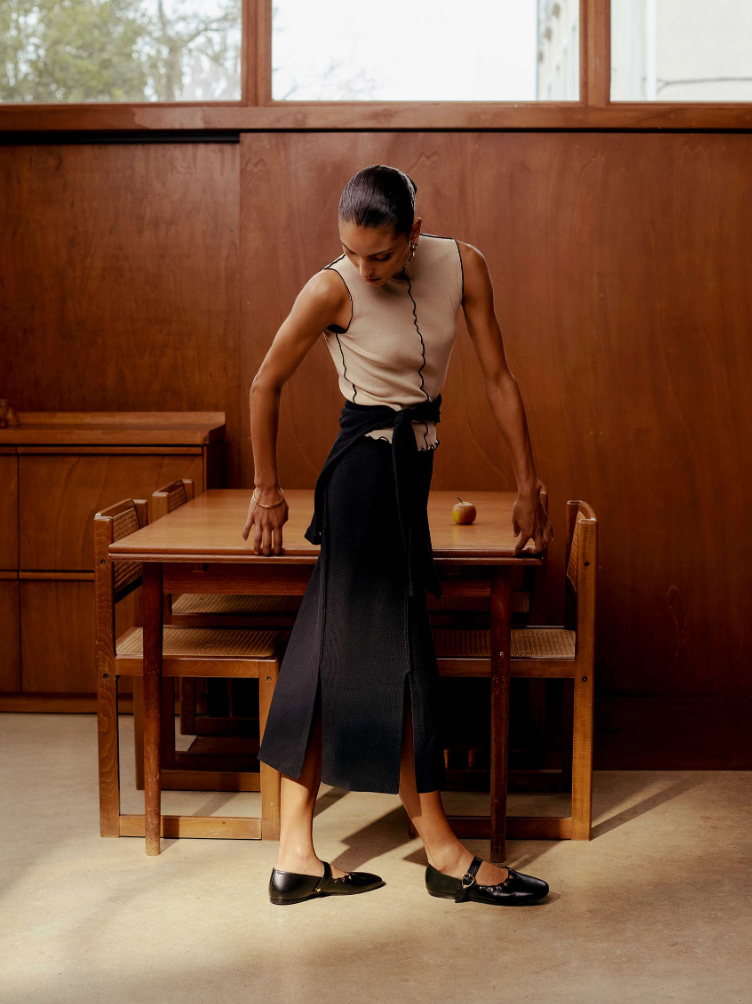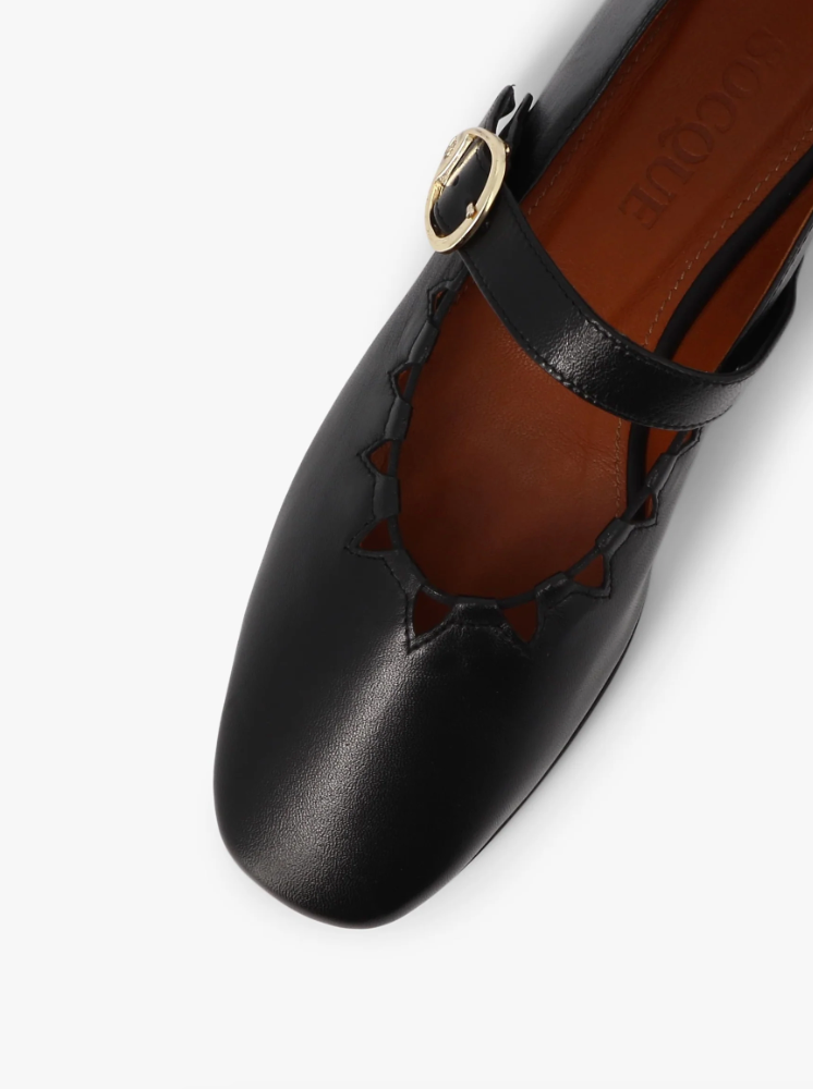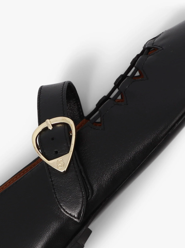 Ballerine plate, simple et sophistiquée. Jeu de découpe et boucle métallique. Cuir souple et semelle moussée, idéale à porter au quotidien.