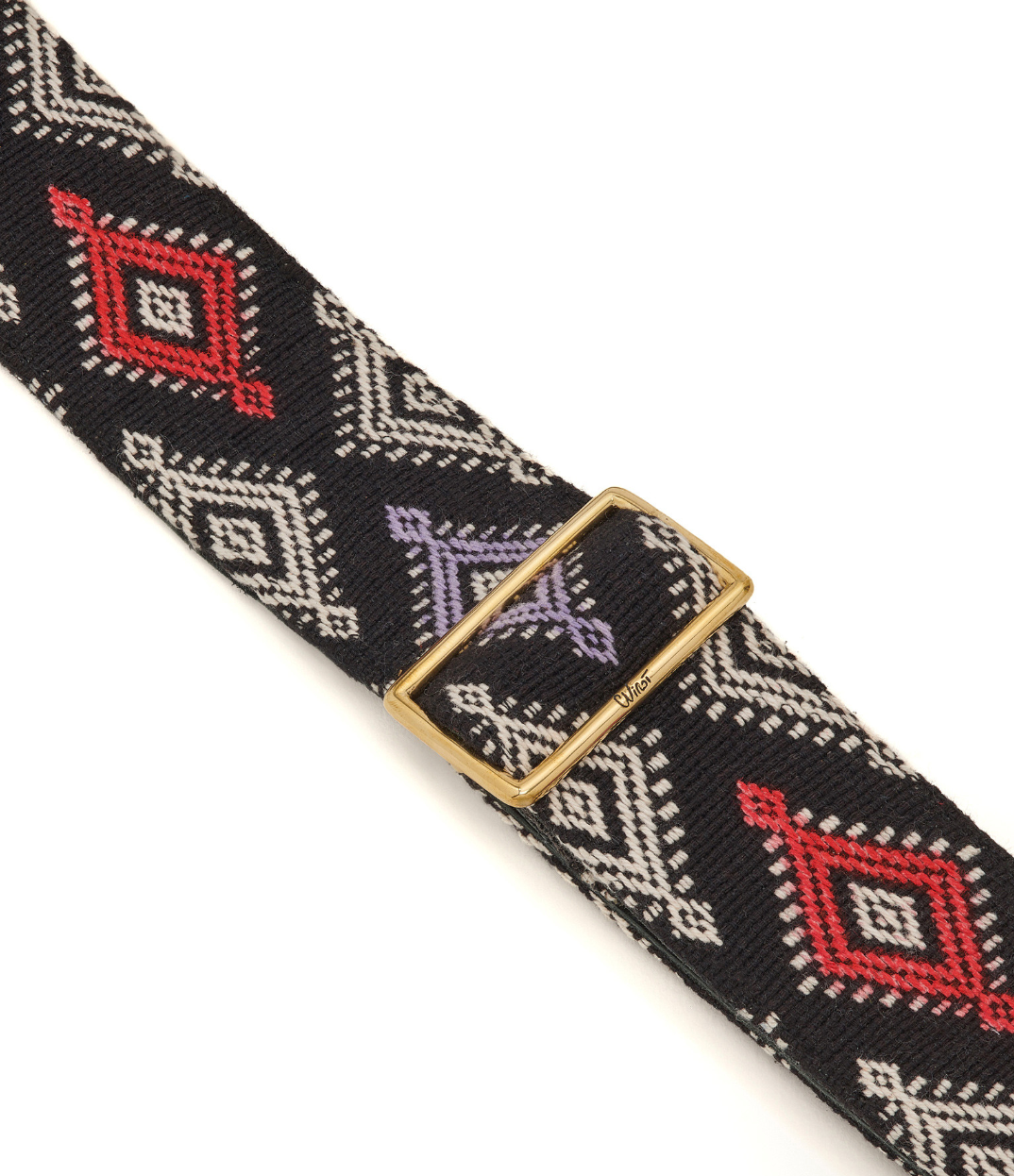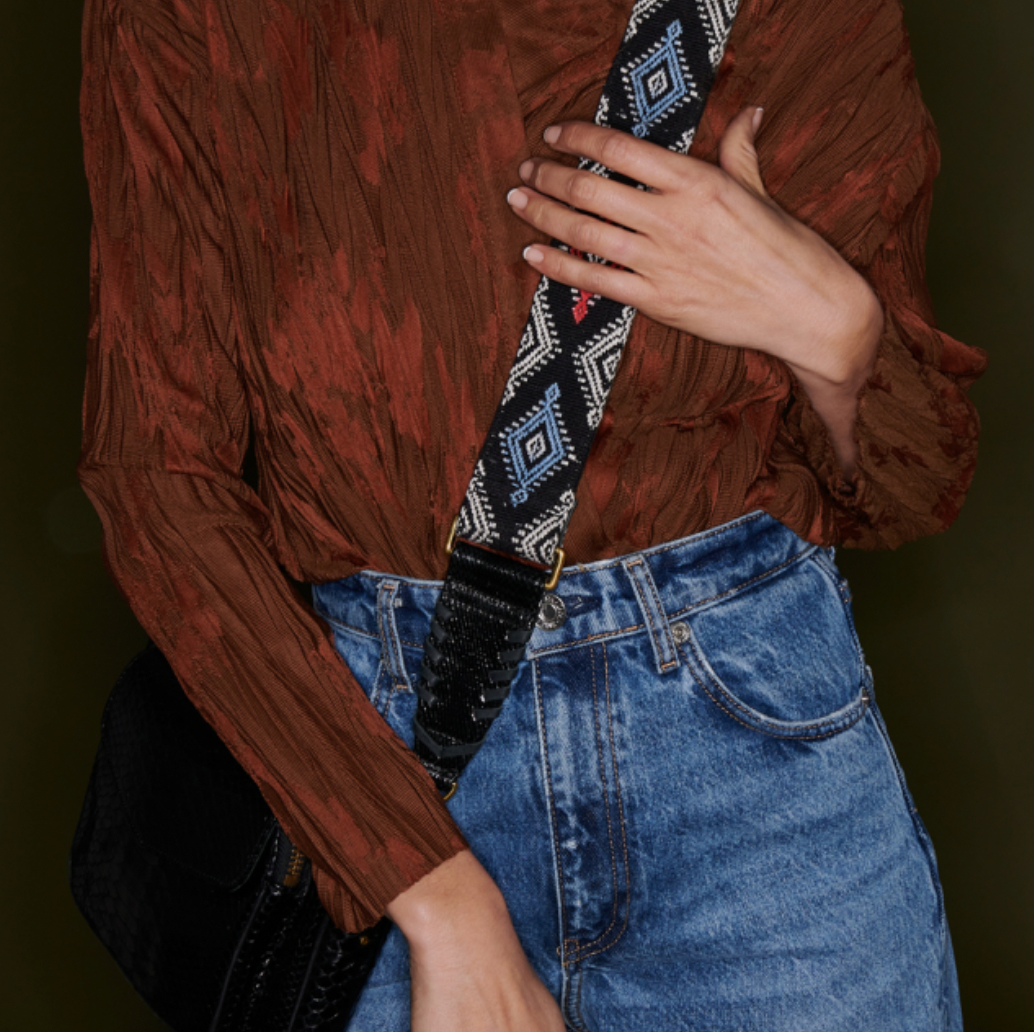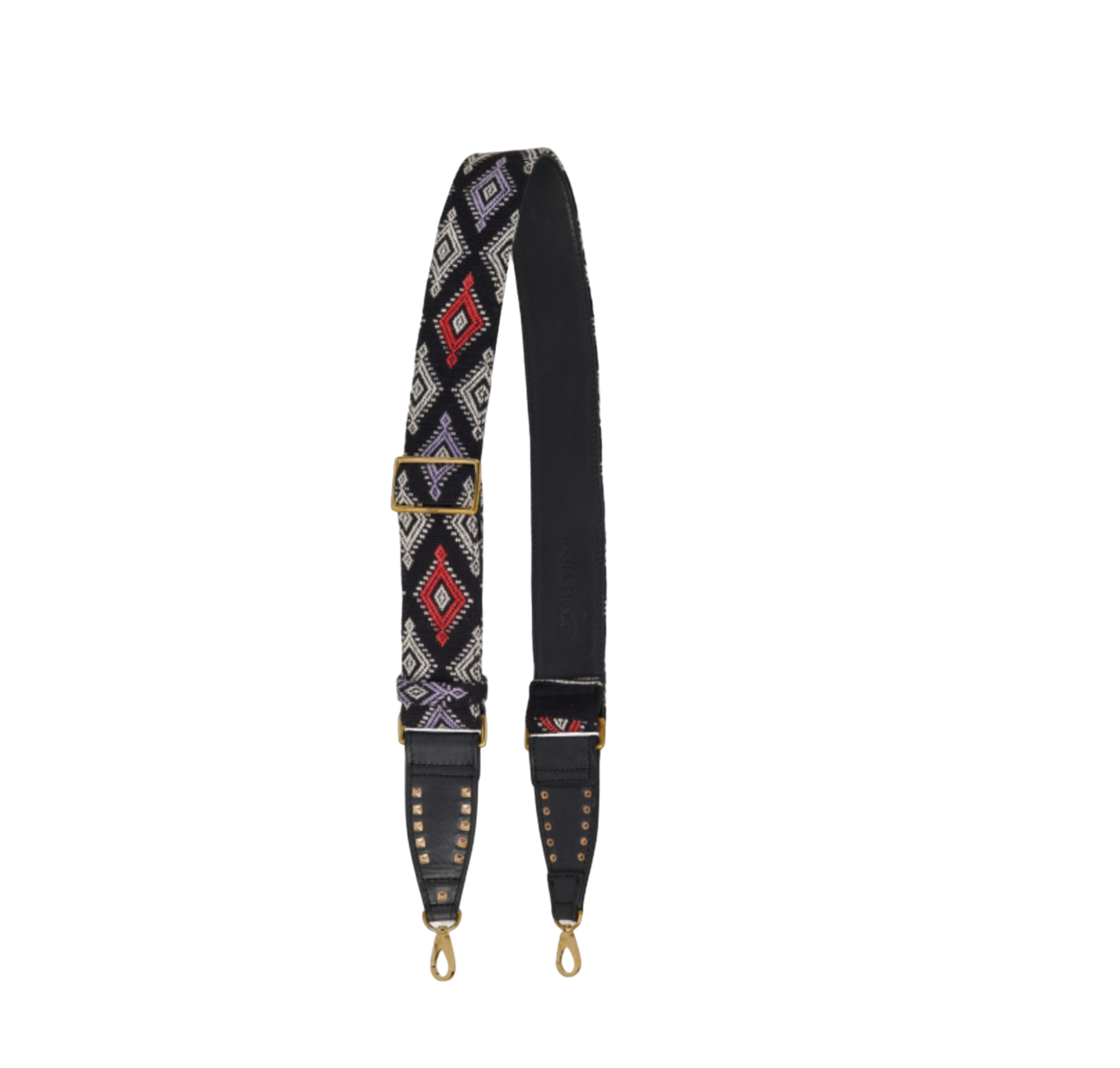 Bandoulière en tissu Endek Indigo, tissée à la main par les artisans de l'Ile Timor. Deux attaches mousquetons. Fabriquée artisanalement à la main.