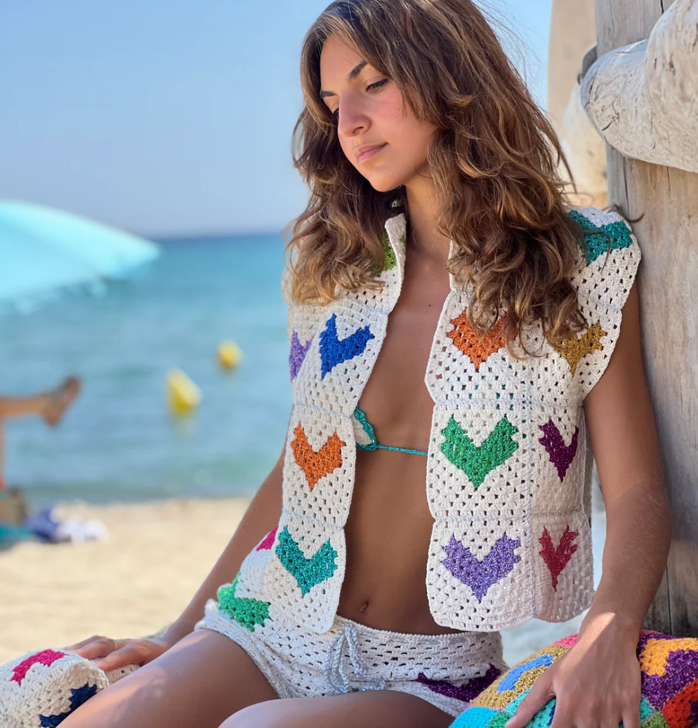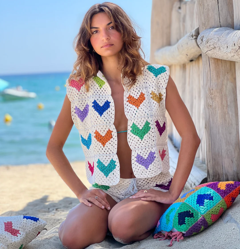 Bolero sans manches mon coeur écru Rose Carmine. Étant donné que chaque pièce est unique et faite à la main, il peut y avoir de légères différences d'un modèle à un autre. Taille unique.