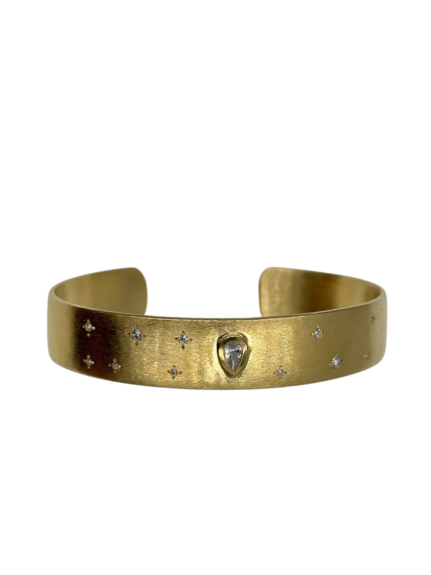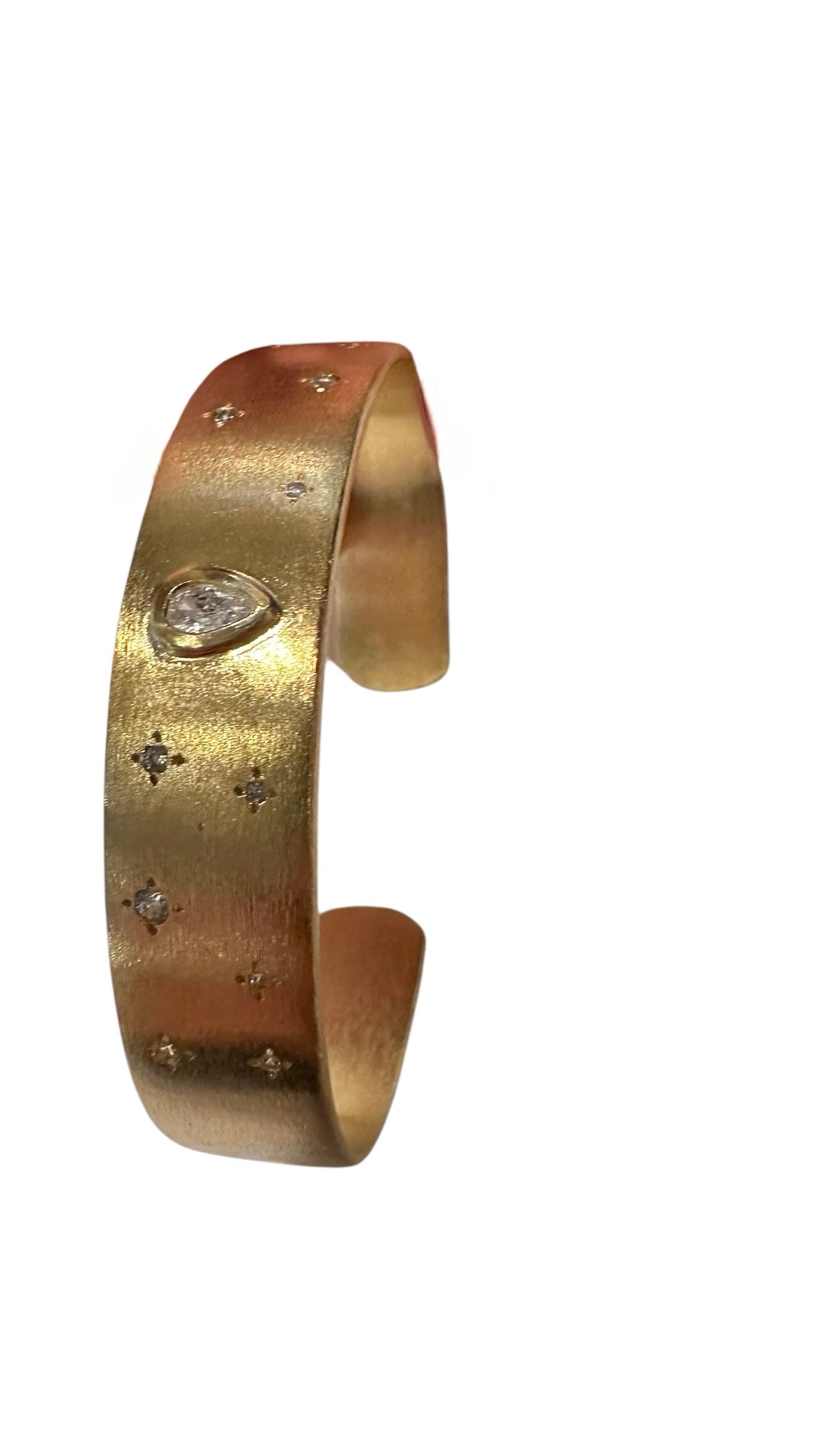 Manchette plaquée or 24 carats, avec incrustations de zircons blancs.