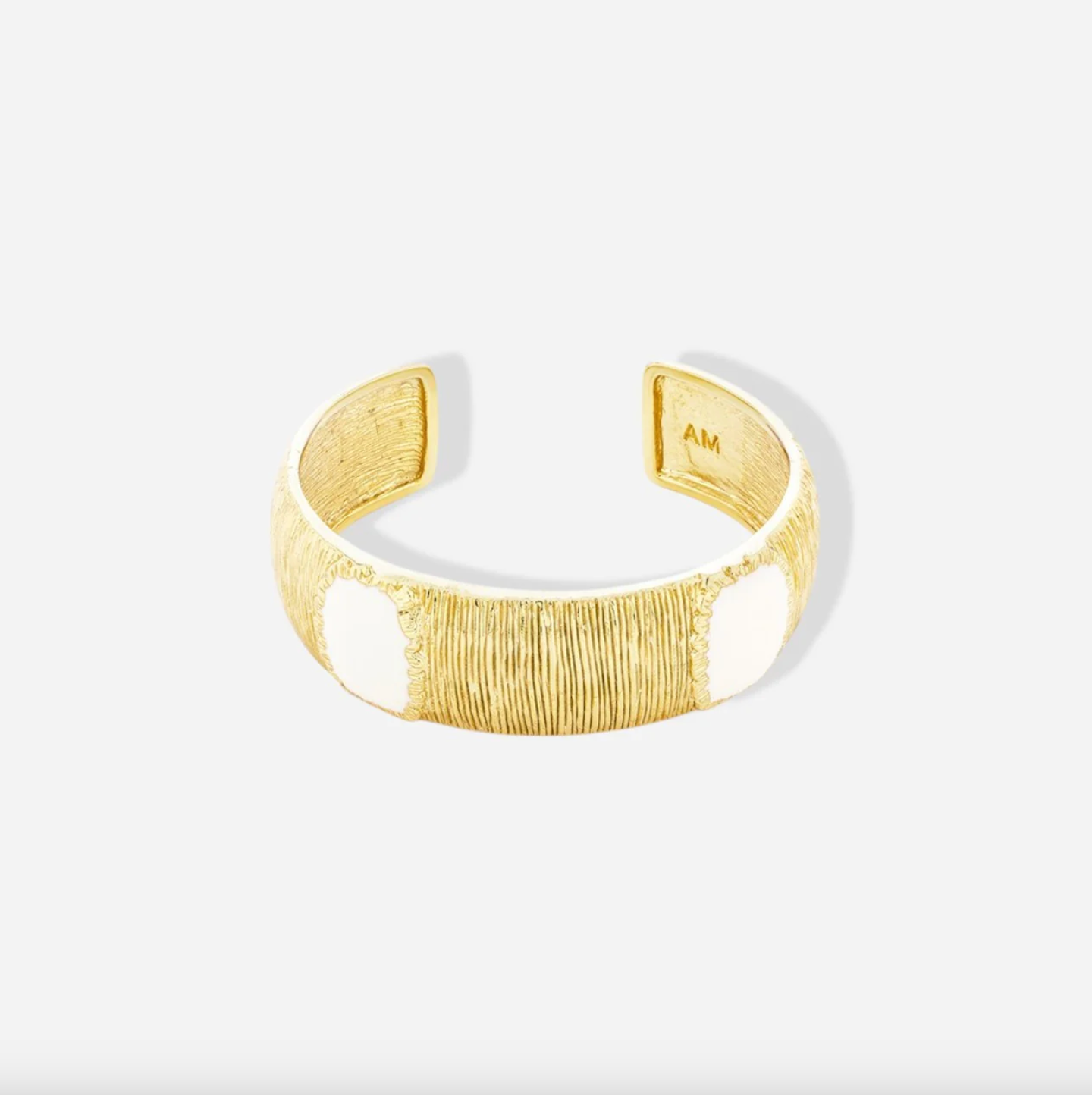Manchette Neva, ajustable et confortable au poignet. Elle puise son inspiration dans l'eau, dans son aspect le plus 'freezy'. Mixe les textures ciselées de l'or à l'aspect lisse de l'email.