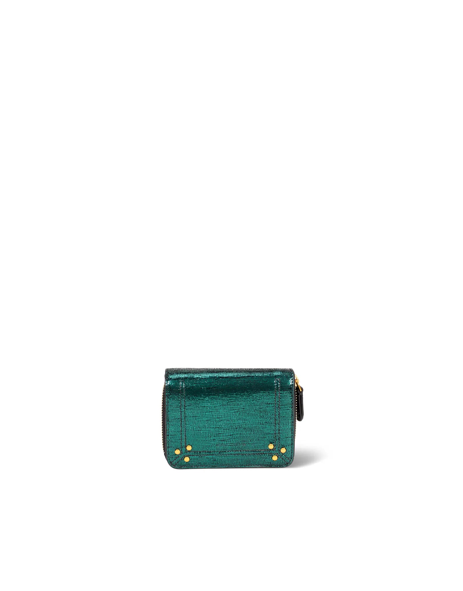 Portefeuille André Chèvre Lamé Vert - Jérôme Dreyfuss