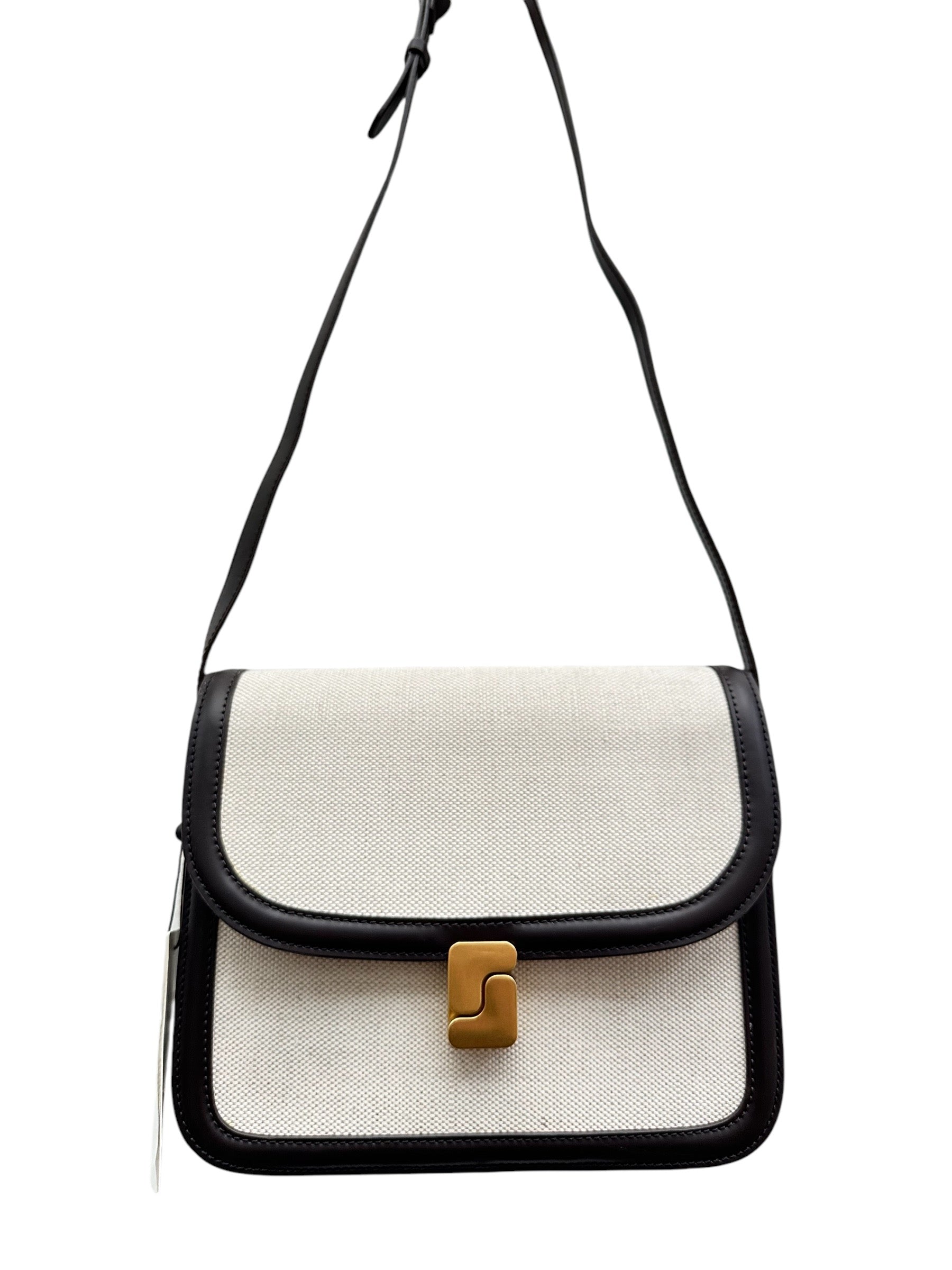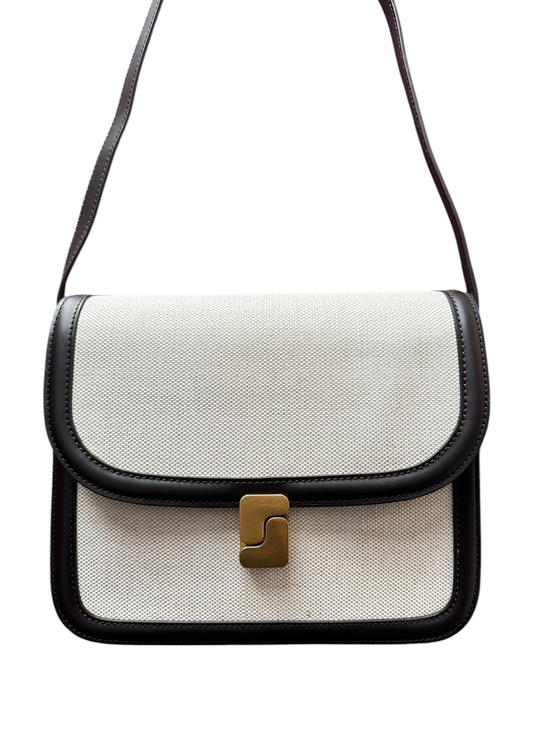 Sac en cuir et toile coton marron foncé/écru Soeur