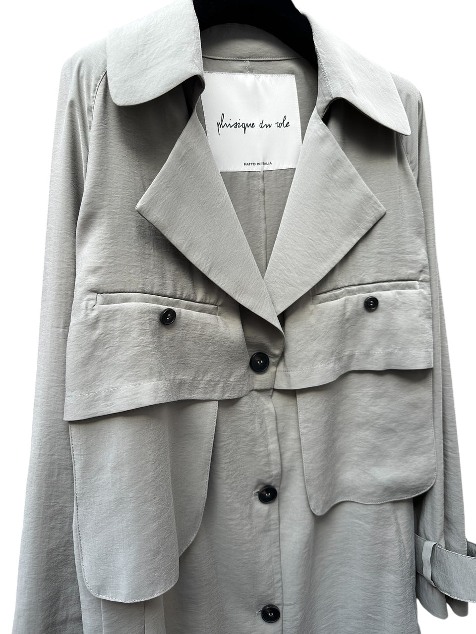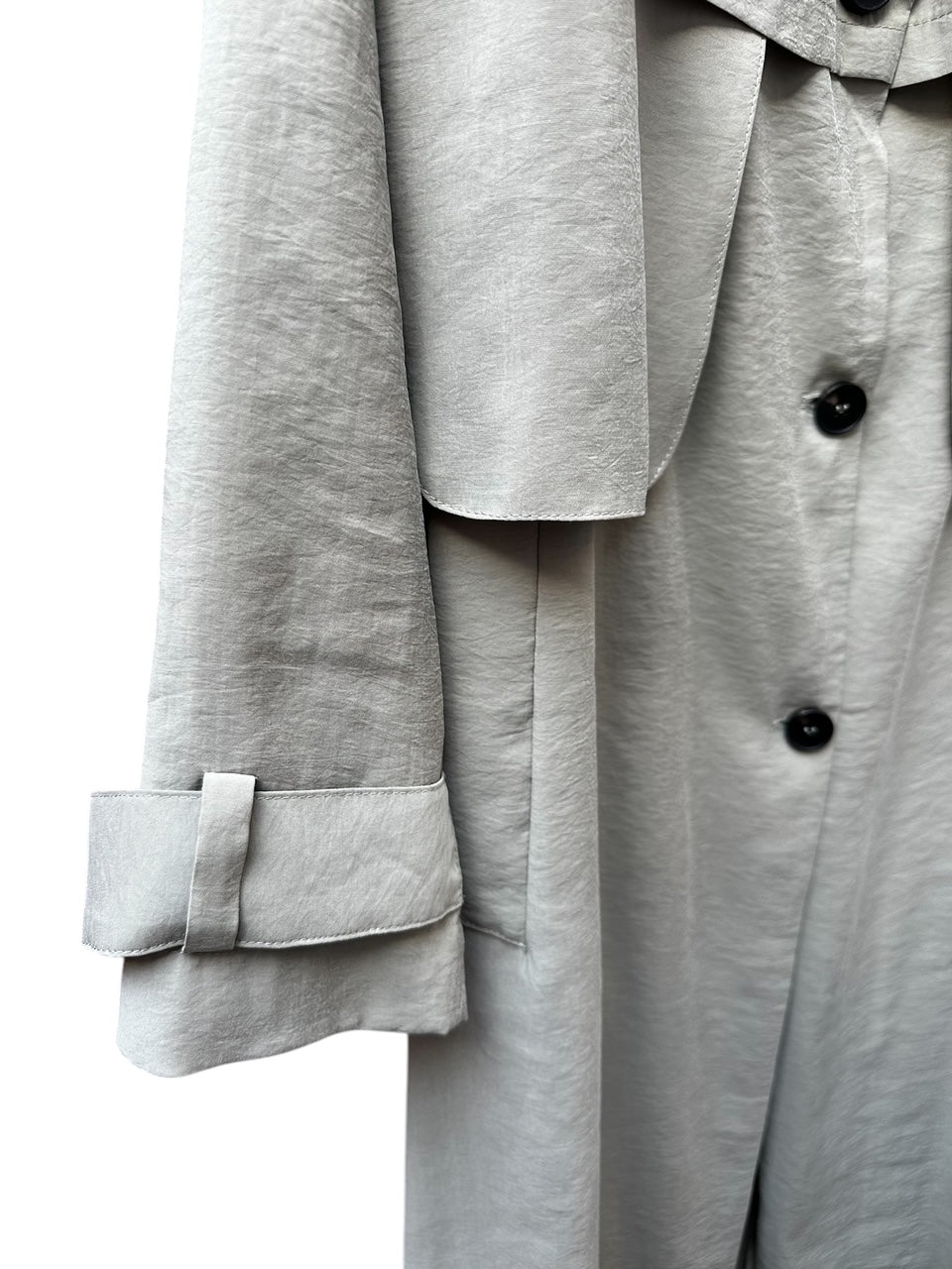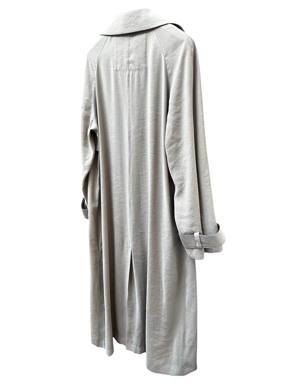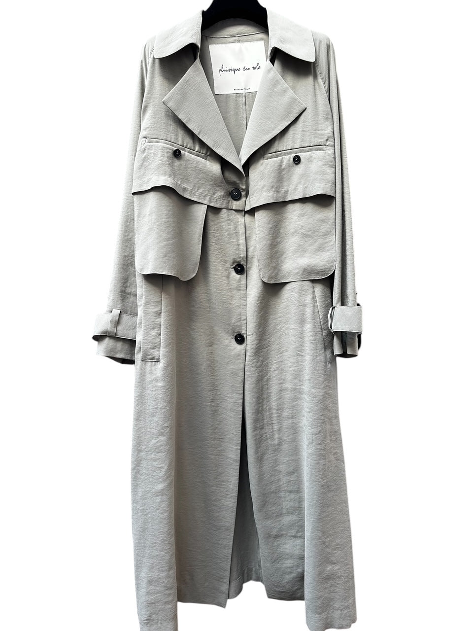 Trench long PDR, coloris Colla. Grandes poches à l'avant et détails de boutons foncés, fendu à l'arrière.