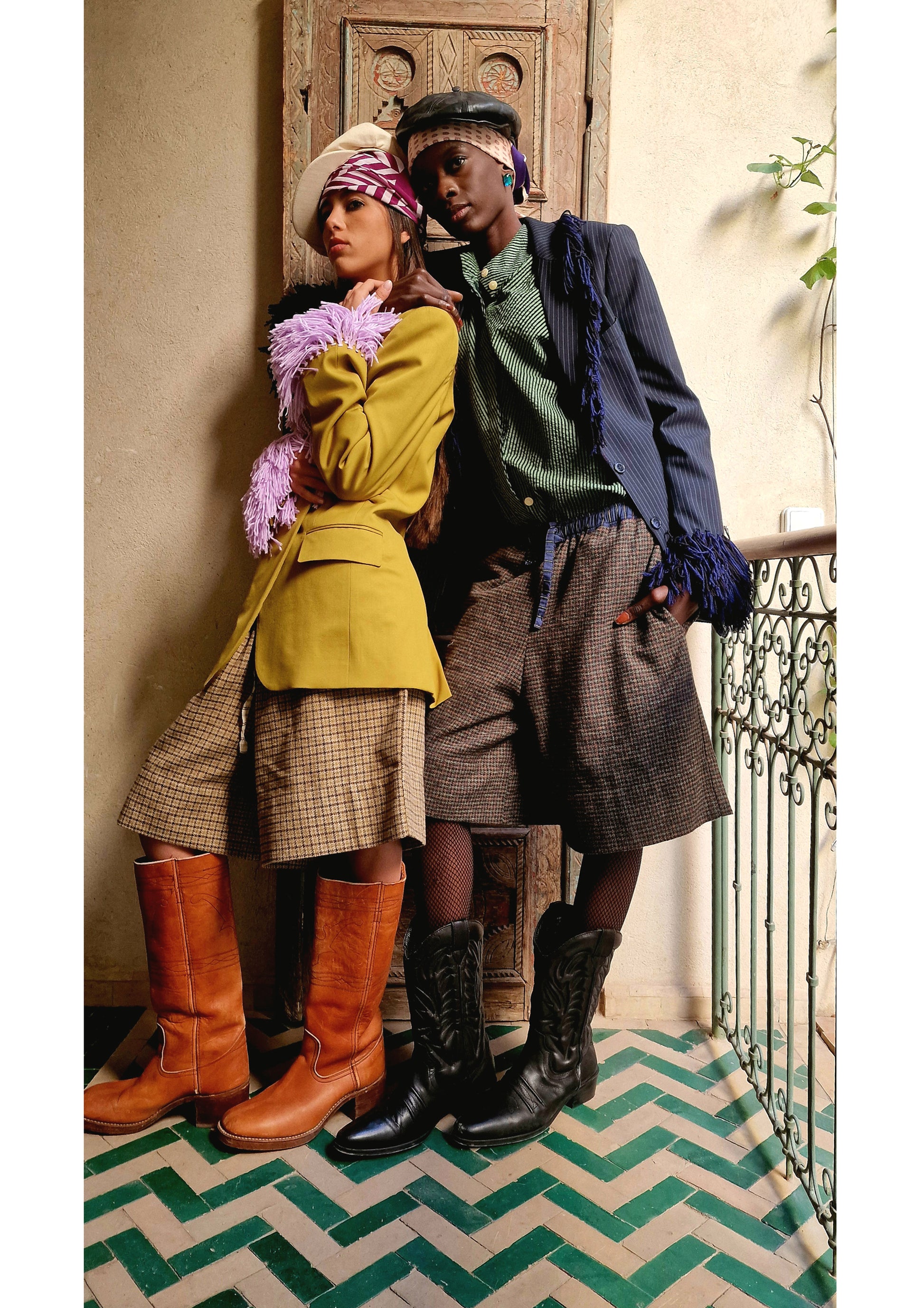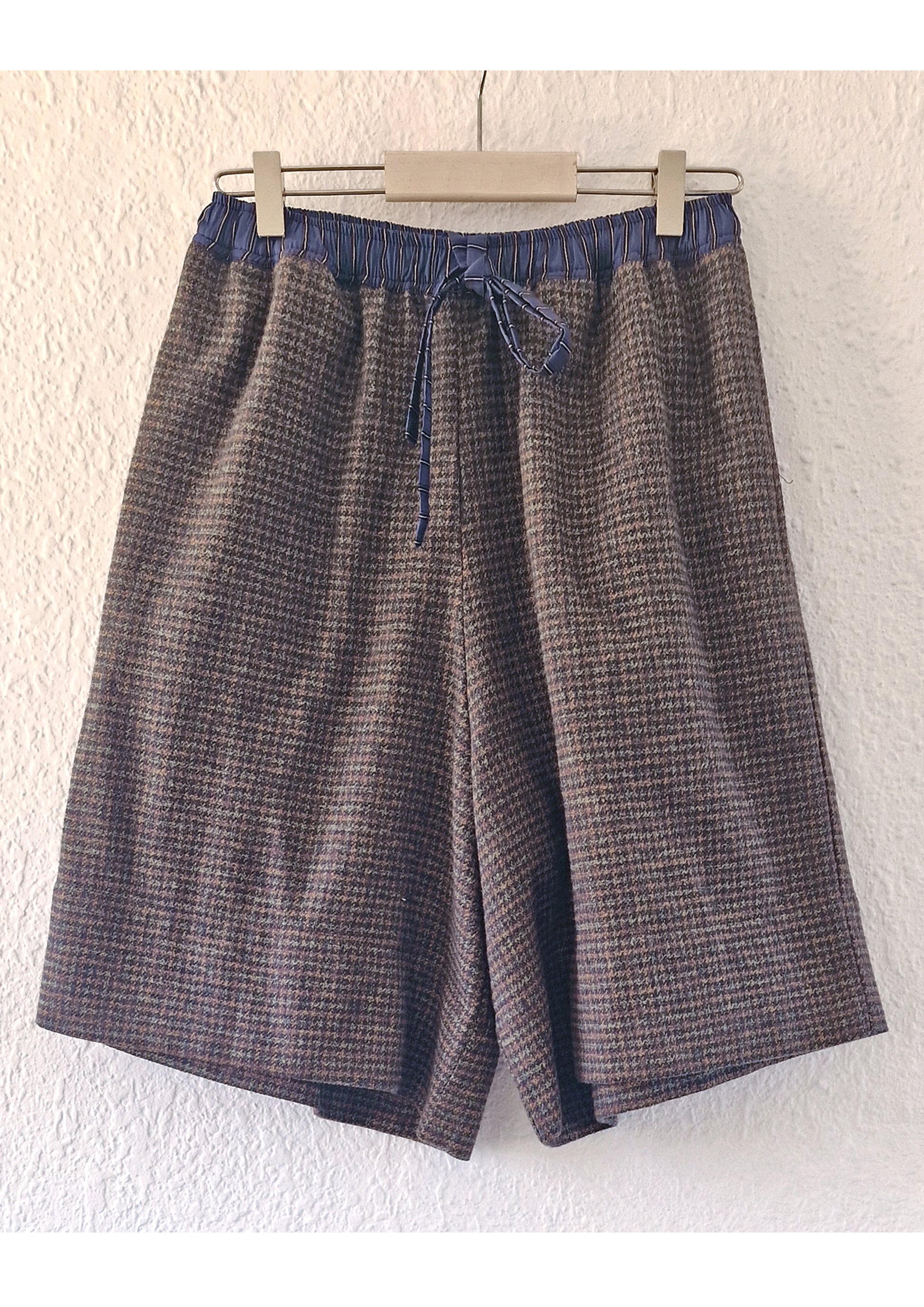 Bermuda en laine, imprimé pied de poule, détail de tissu à la taille
