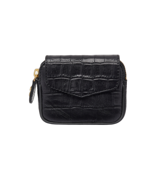 Porte-Monnaie Cuir Embossée Croco Karl Noir - Claris Virot