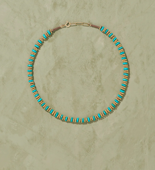Collier Peony Aigue Marine Santa Maria Fil Marron - Tityaravy