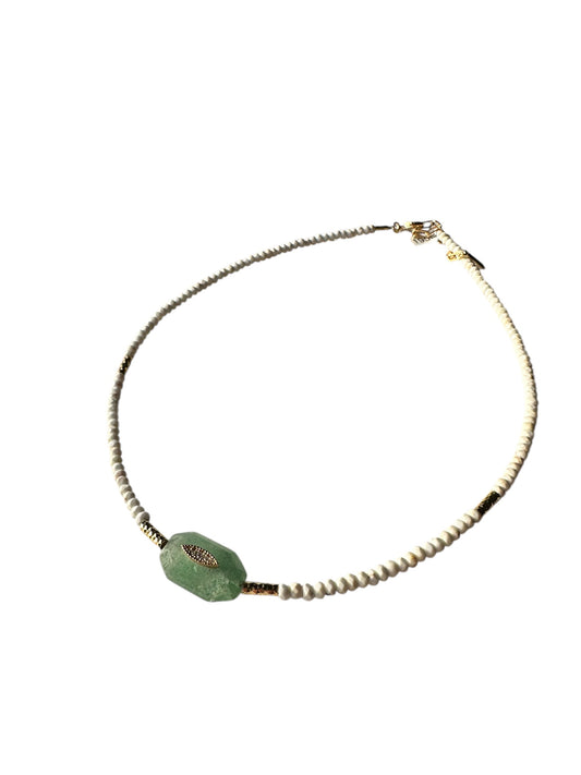 Collier Inside 2 Quartz Vert/Perles Blanches - Hanka ïn
