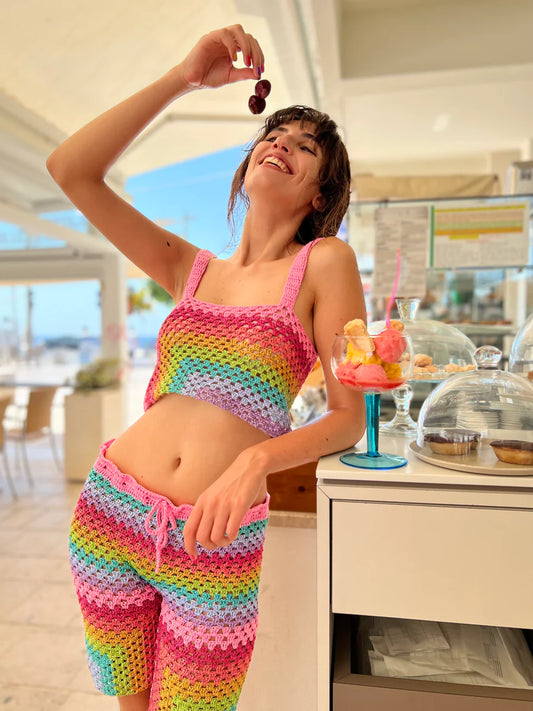 Crop-Top Rose Arc-en-ciel - Rose Carmine