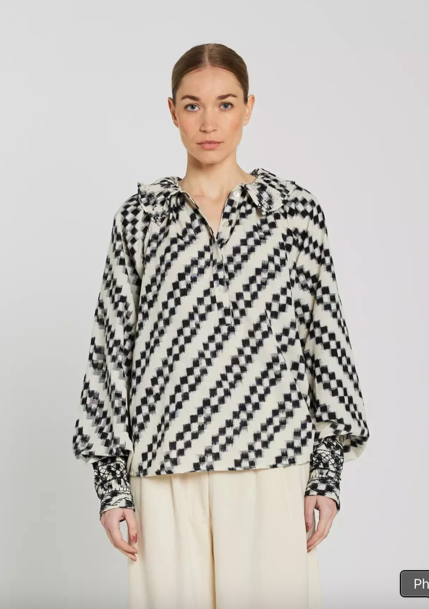 Blouse Abril Ikat Noir et Blanc - V de Vinster