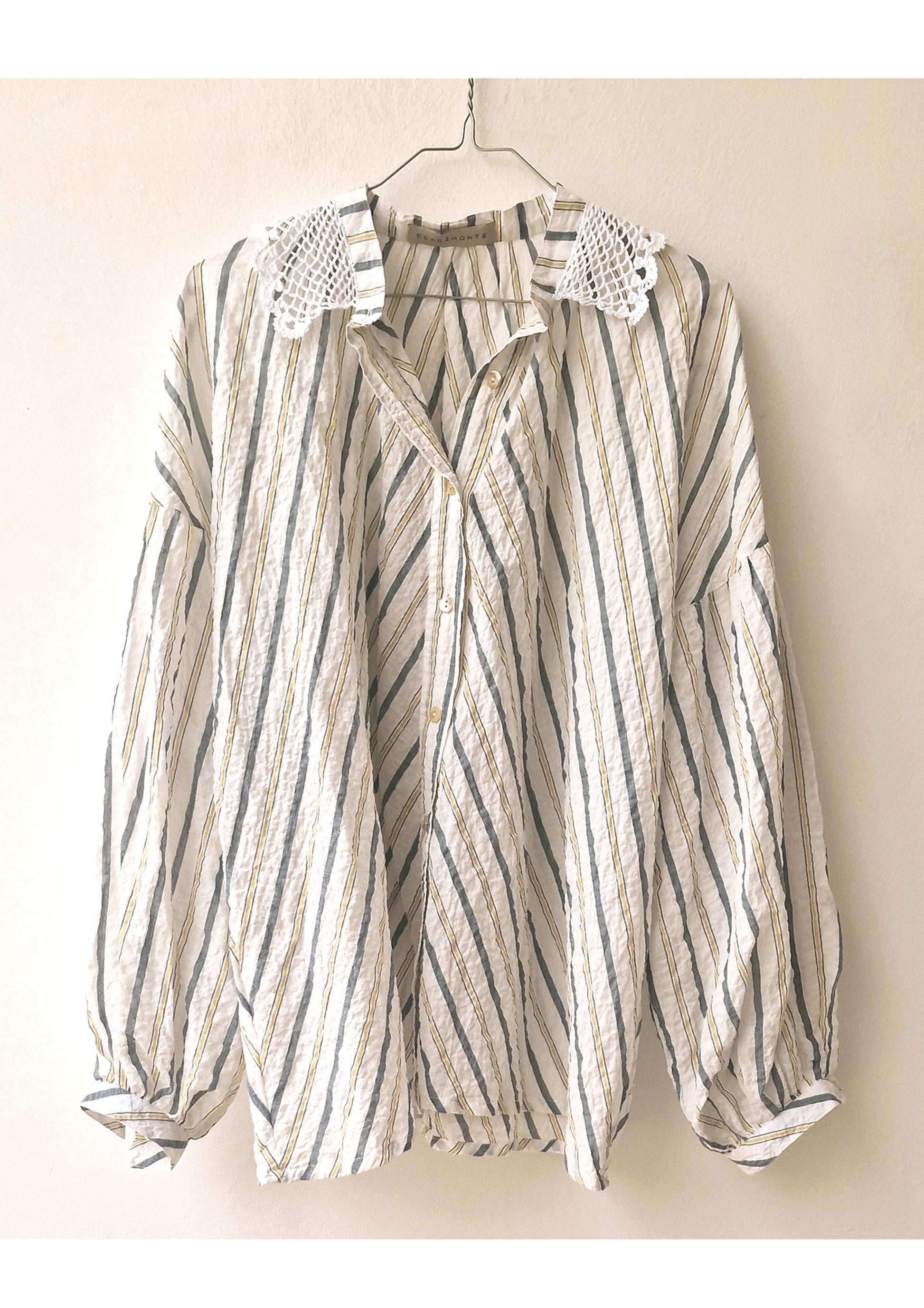 Chemise Delice crochet, coupe oversize avec petit col en crochet. Pièce réalisée à la main. Taille unique.