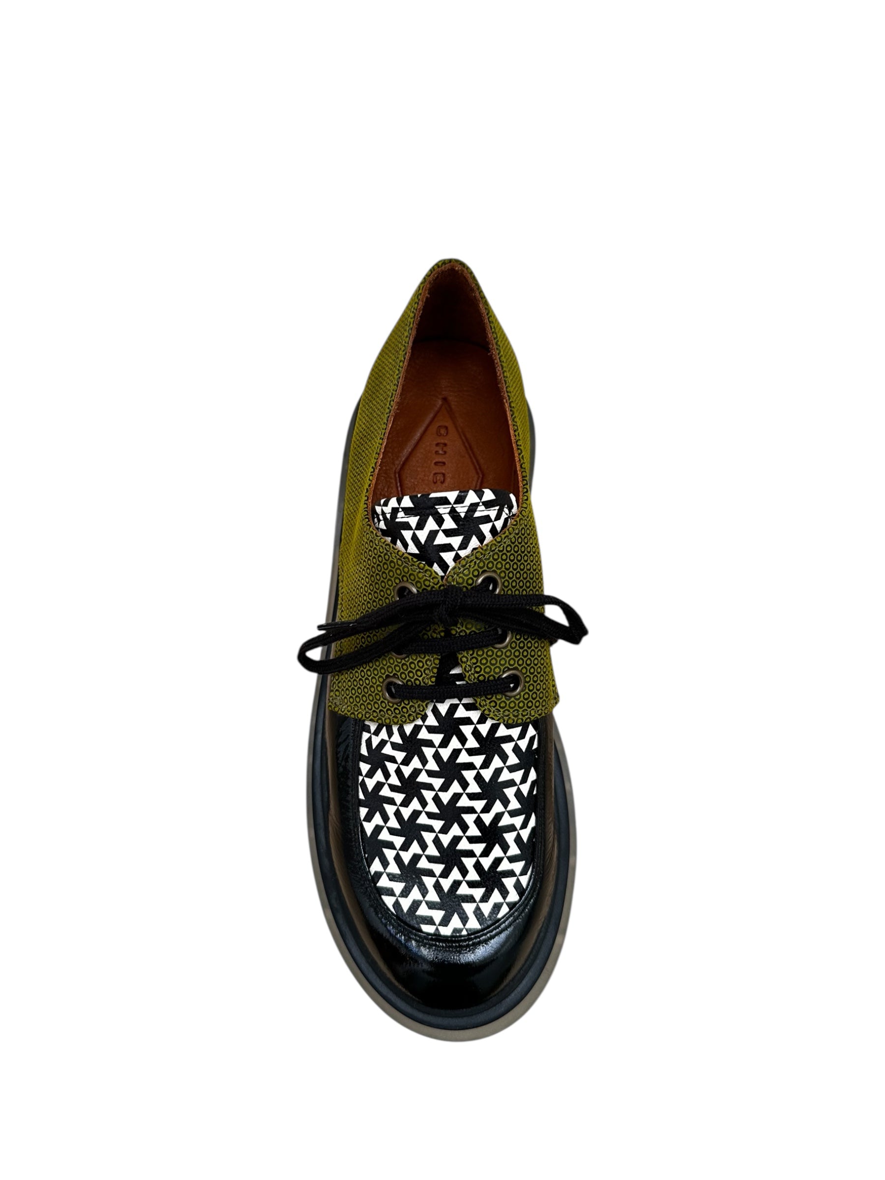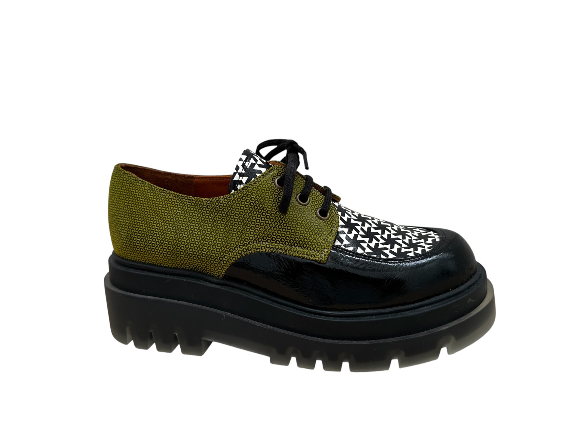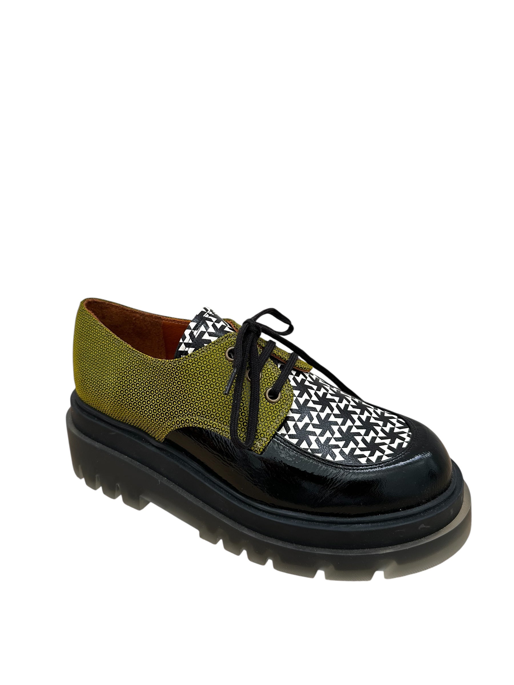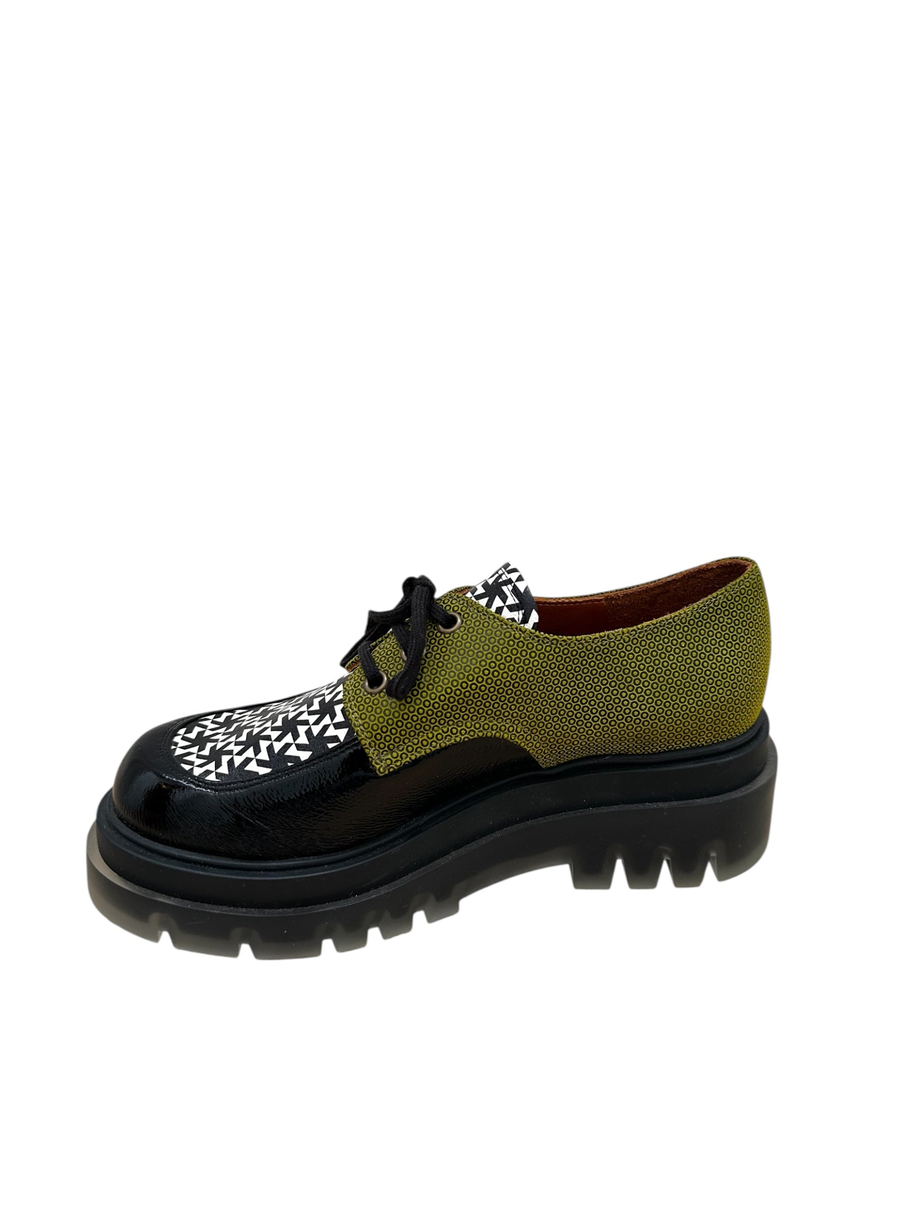 Derby Semelle Plateforme Crantée Imprimé/Noir - Chie Mihara