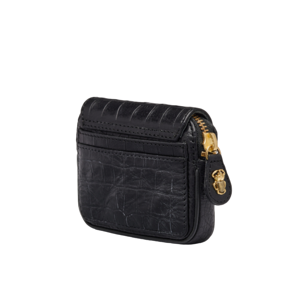 Porte-Monnaie Cuir Embossée Croco Karl Noir - Claris Virot
