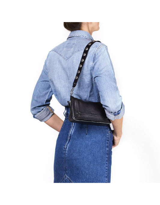Baby Ceinture Cuir Embossée Croco Noir - Claris Virot