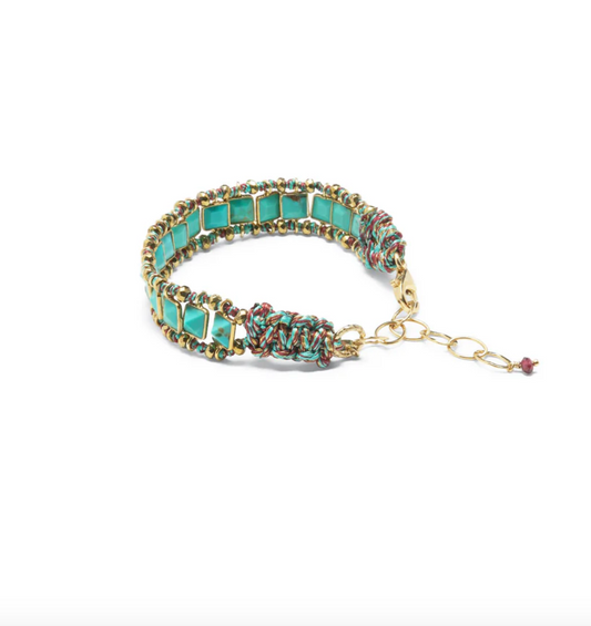 Bracelet Kasha Macramé Diamant Polki Quartz Vert - Room Service