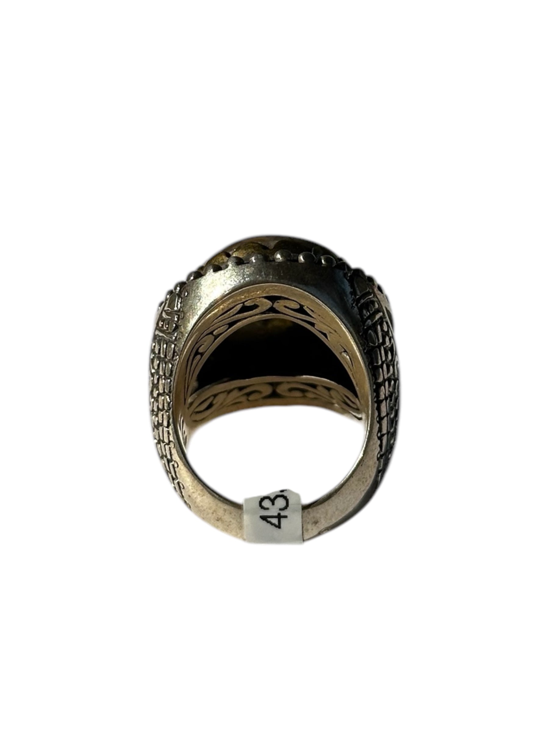 Bague en argent 925 ornée d'une pierre semi-précieuse, sertie de laiton. Ce modèle taille petit du fait de l'épaisseur de la monture, il est donc recommandé de prendre la taille au dessus de votre taille habituelle.