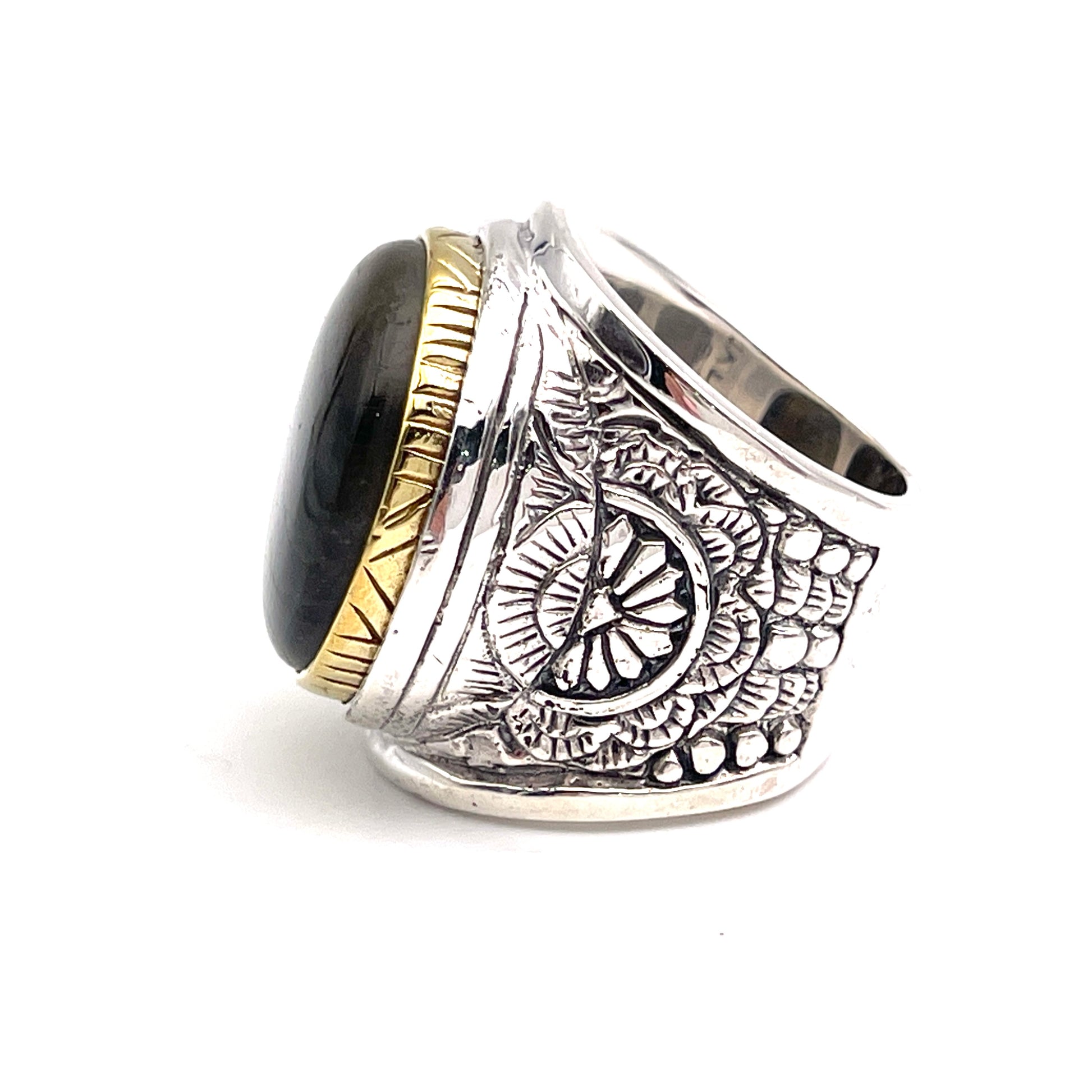 Taille : 56 (Il est conseillé de prendre une ou deux tailles au dessus de votre taille habituelle, la monture de la bague étant épaisse)