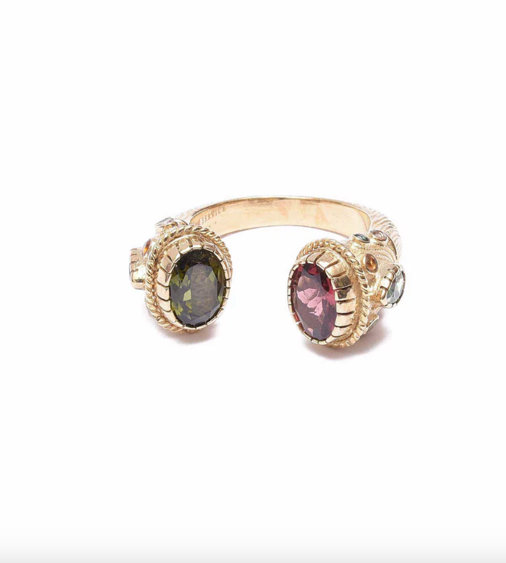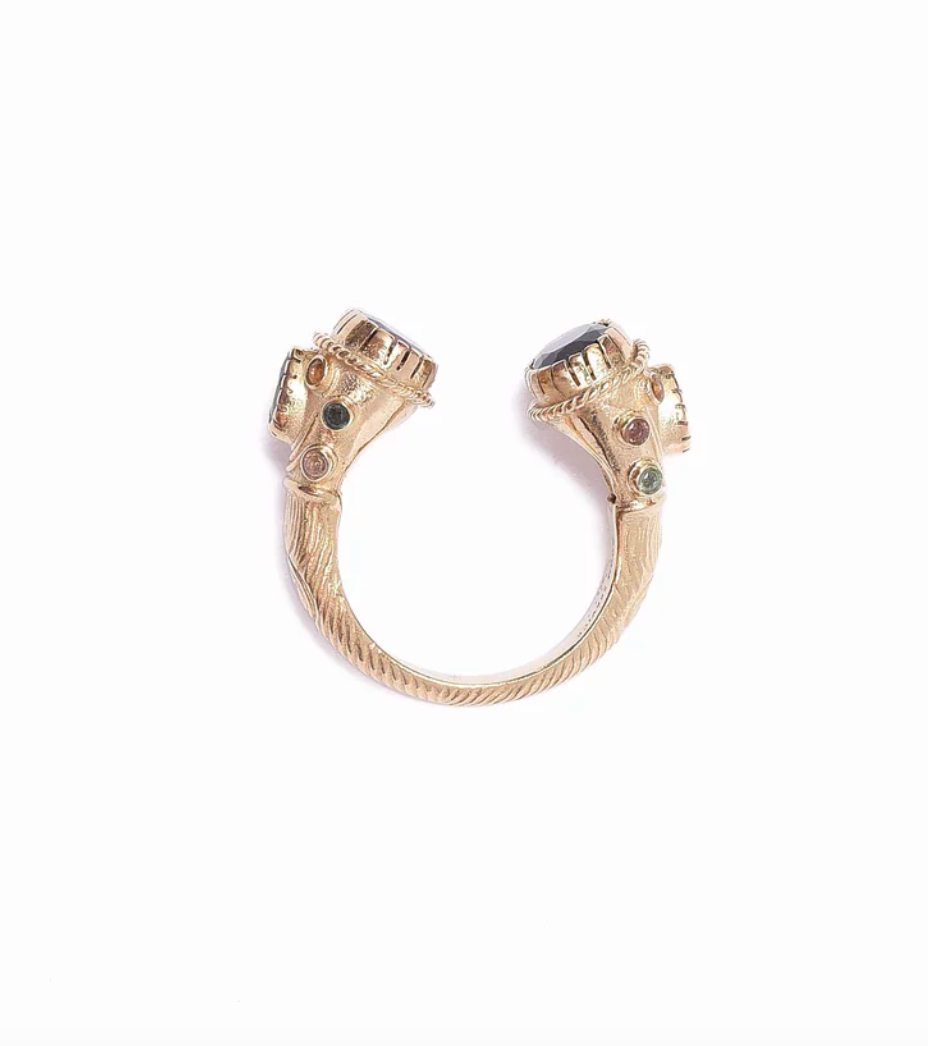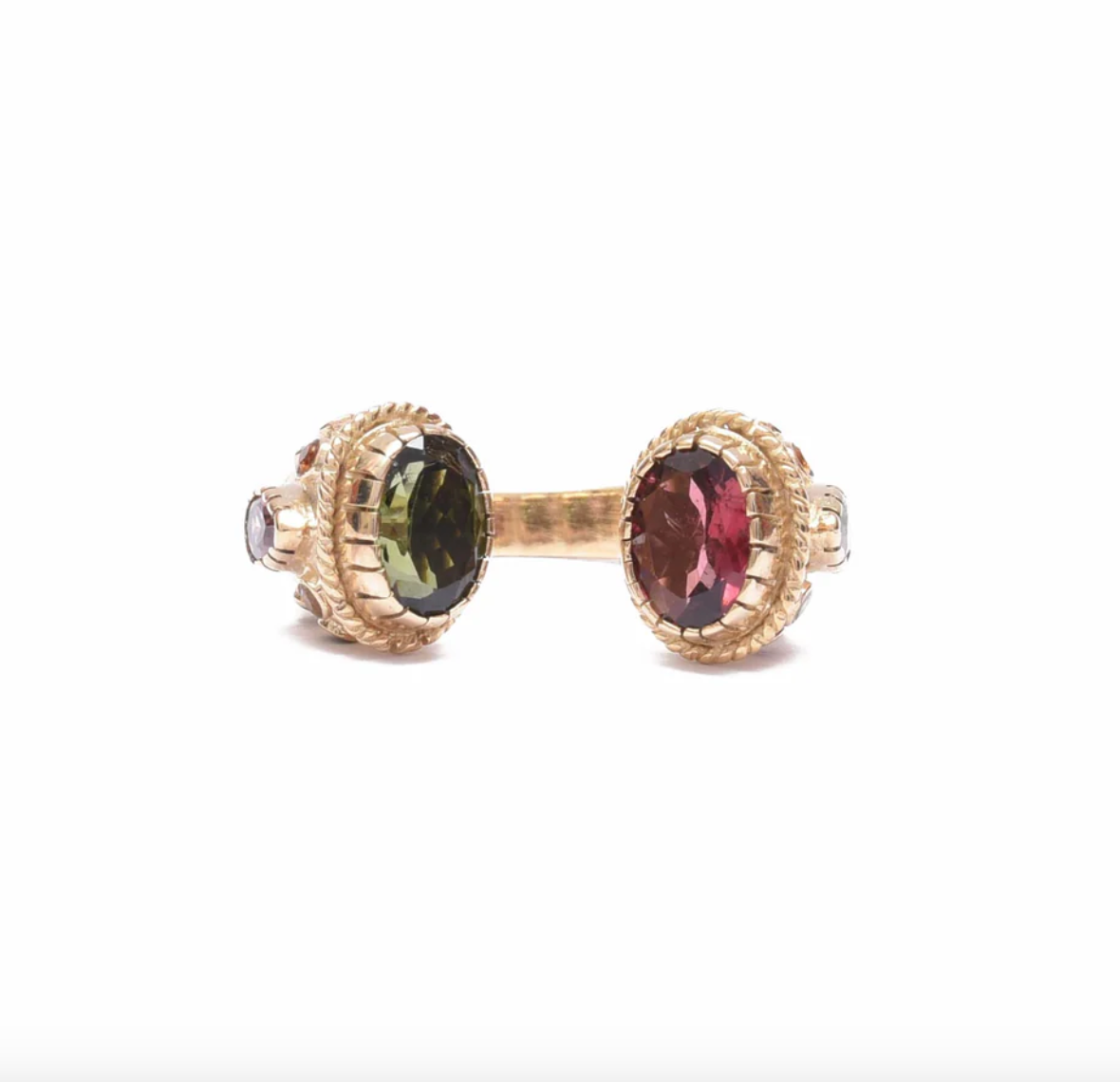 Composition : Pierres fines naturelles tourmalines multicolores. Base argent 925 plaqué or 24 carats, 3 microns.