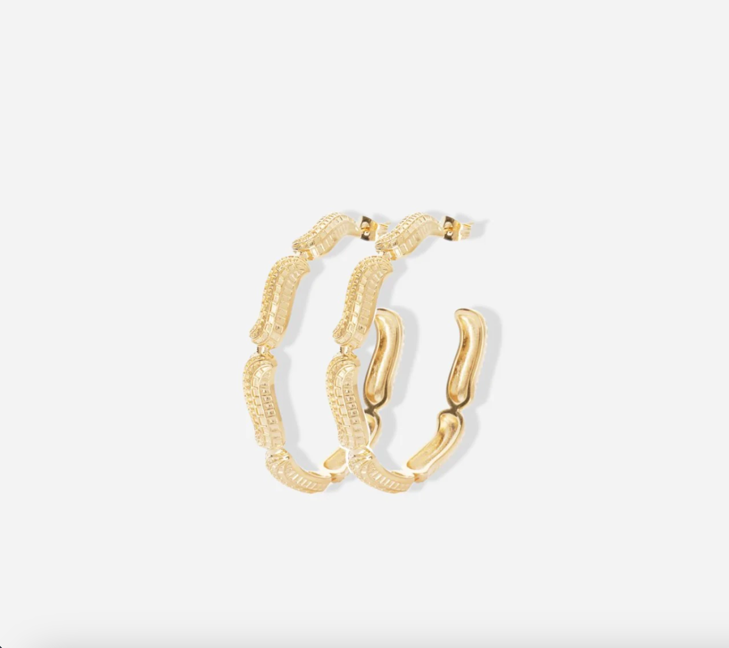 Boucles d'oreilles créoles Peanuts, collection inspirée des trésors spectaculaires retrouvés dans les fouilles archéologiques des tombes royales de Sipan.