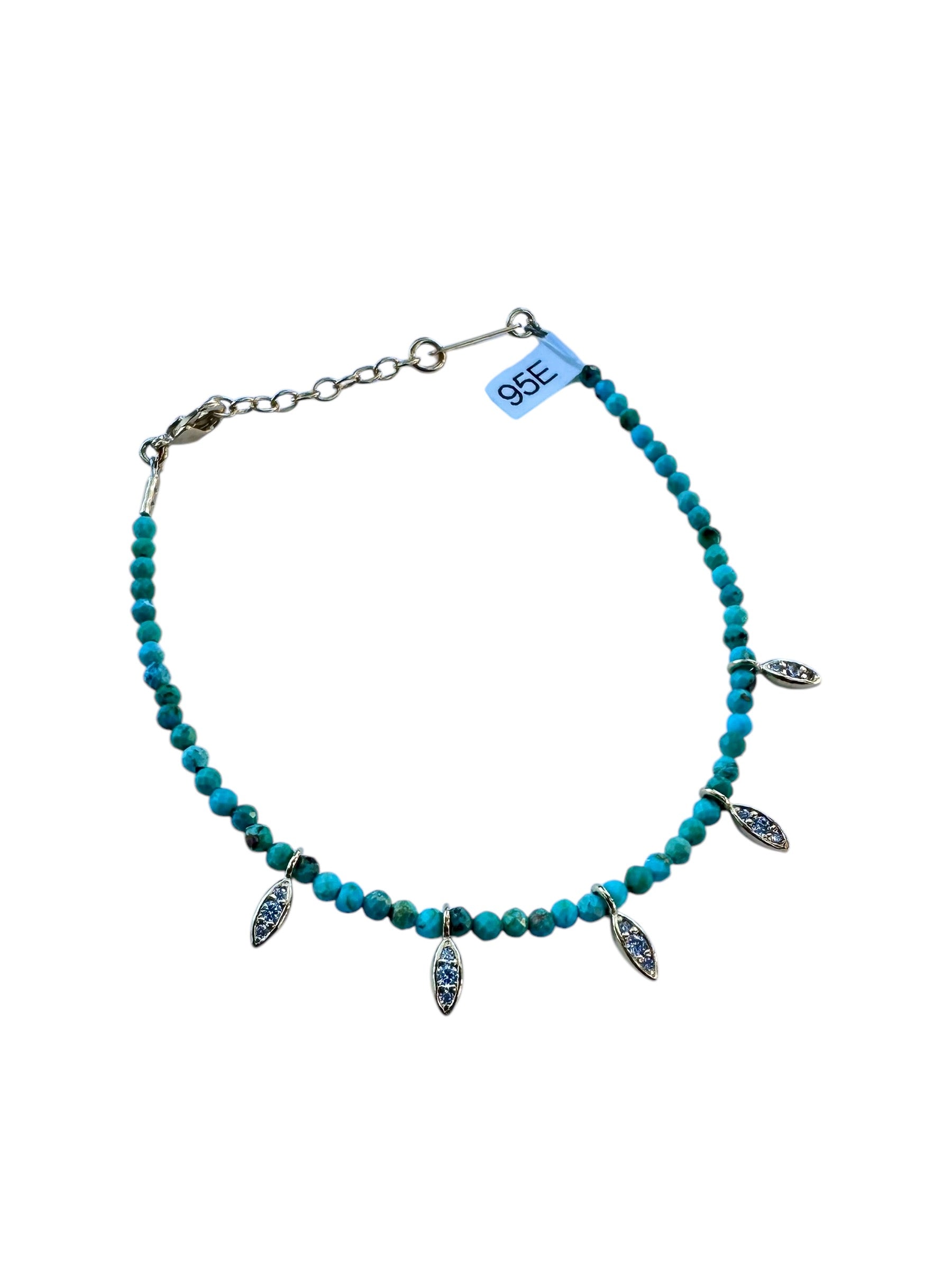 Bracelet en turquoise, zircons et plaqué or 24 carats.