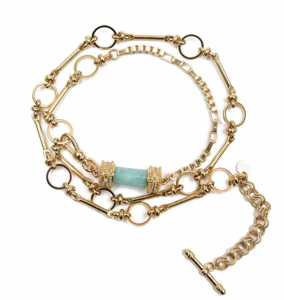 Collier pouvant se porter en bracelet multi-tours avec pendentif en pierre fine