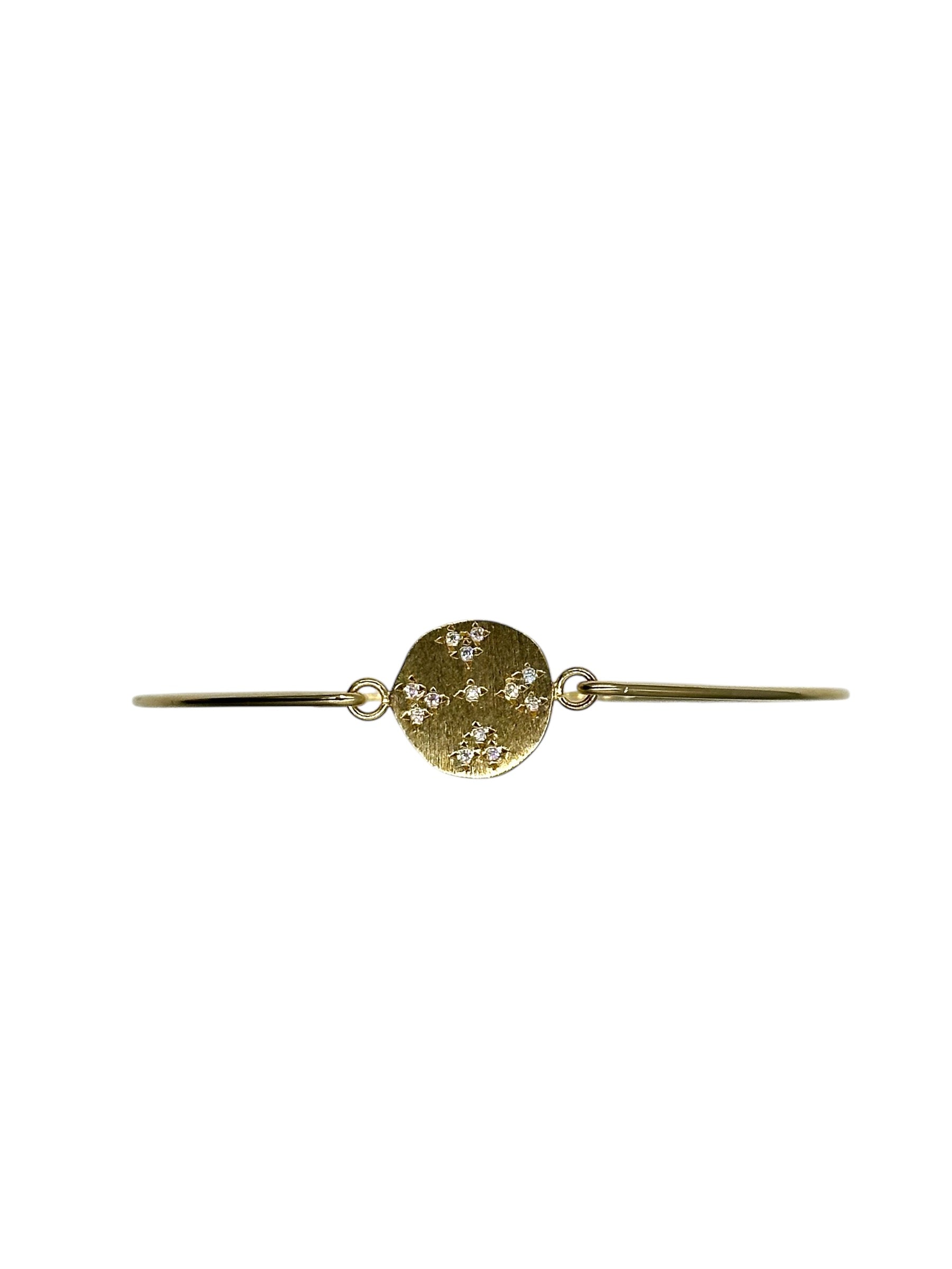 Jonc Hanka ïn avec incrustations de zircons en forme de croix, plaqué Or 24 carats. S'ouvre et se ferme sur l'avant. Taille unique.