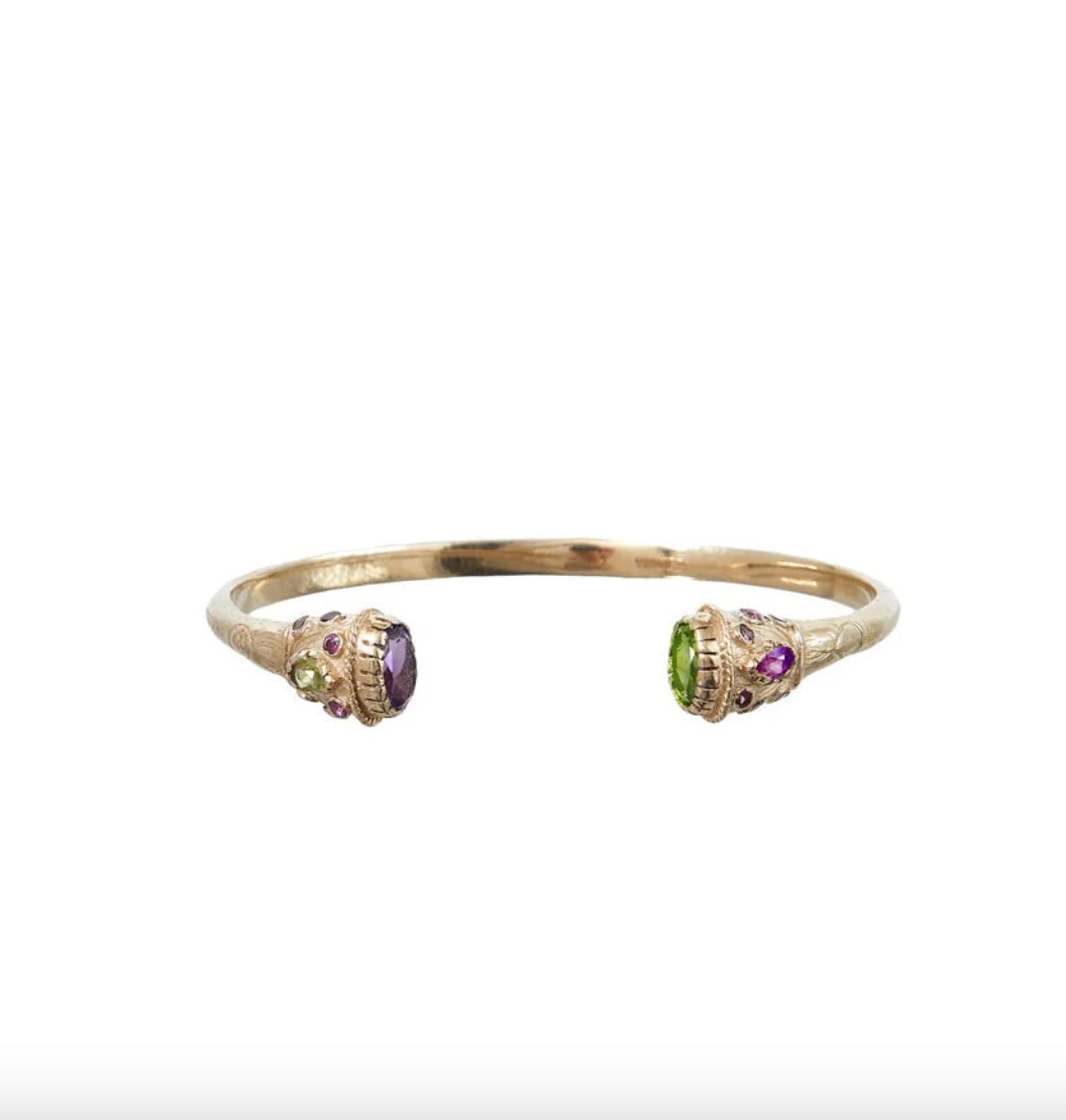 Composition : Améthyste, péridot, citrine et rhodolites, laiton plaqué or 24 carats, 3 microns.