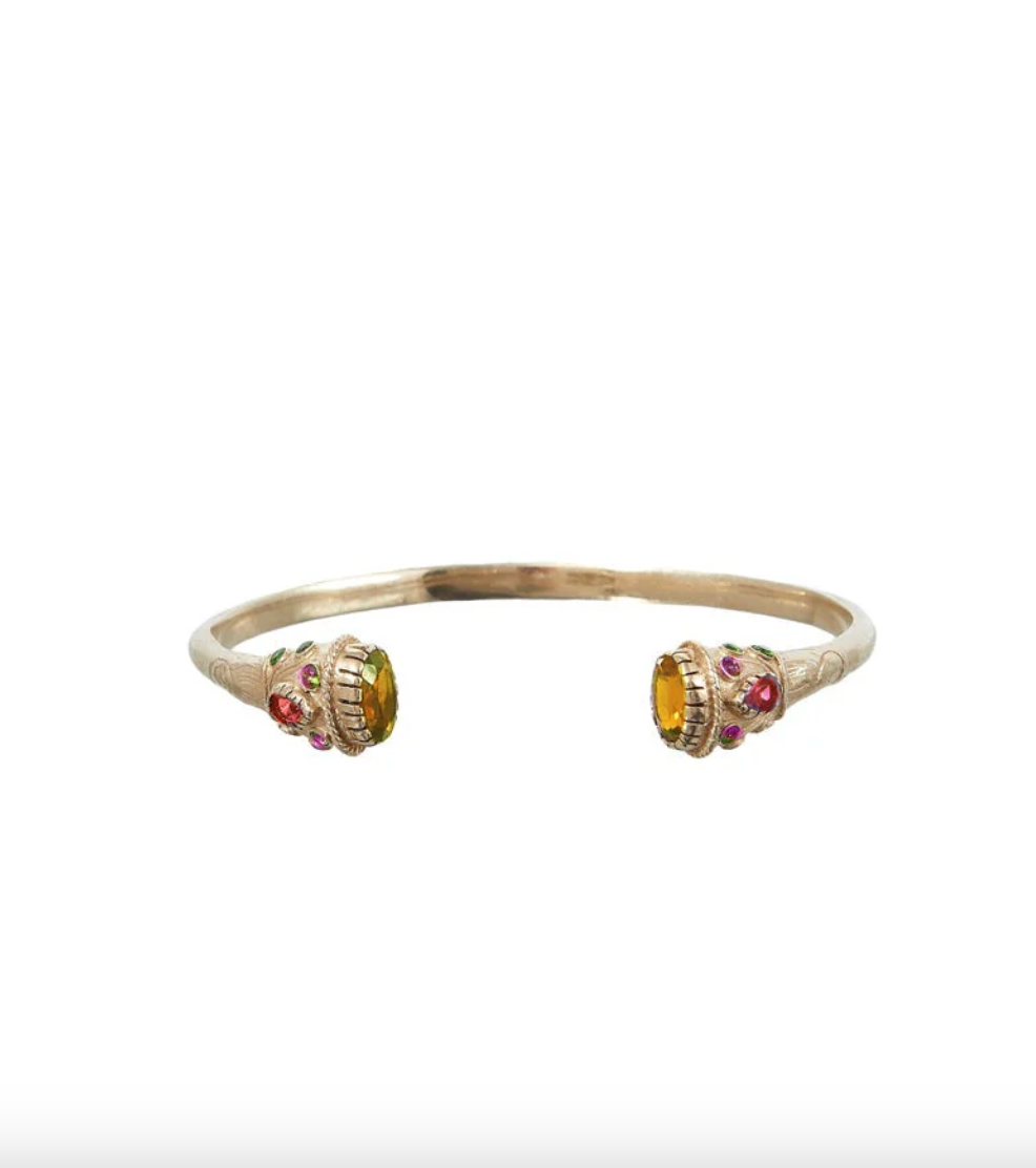 Composition : Citrine, grenat, petites pierres fines multicolores, laiton plaqué or 24 carats, 3 microns.