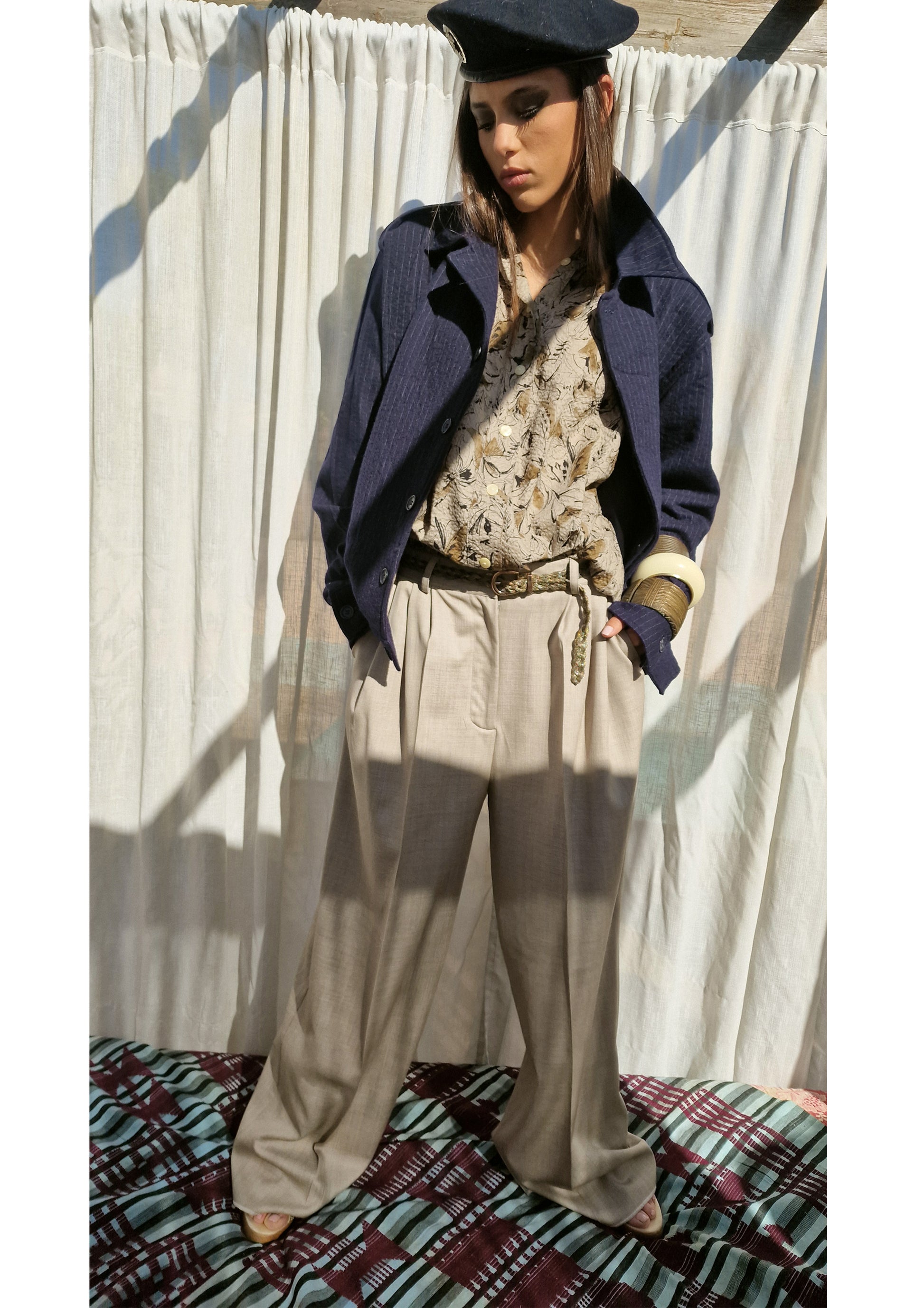 Pantalon Paolo gris, coupe ample, matière très fluide et douce.