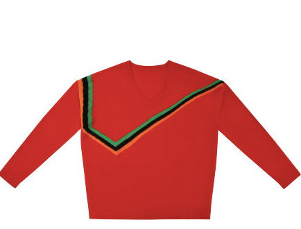 Pull à col V aux trois bandes de couleurs traversantes. Un modèle évocateur à la chanteuse Deborah Harry pour son style assurément "Blondie".