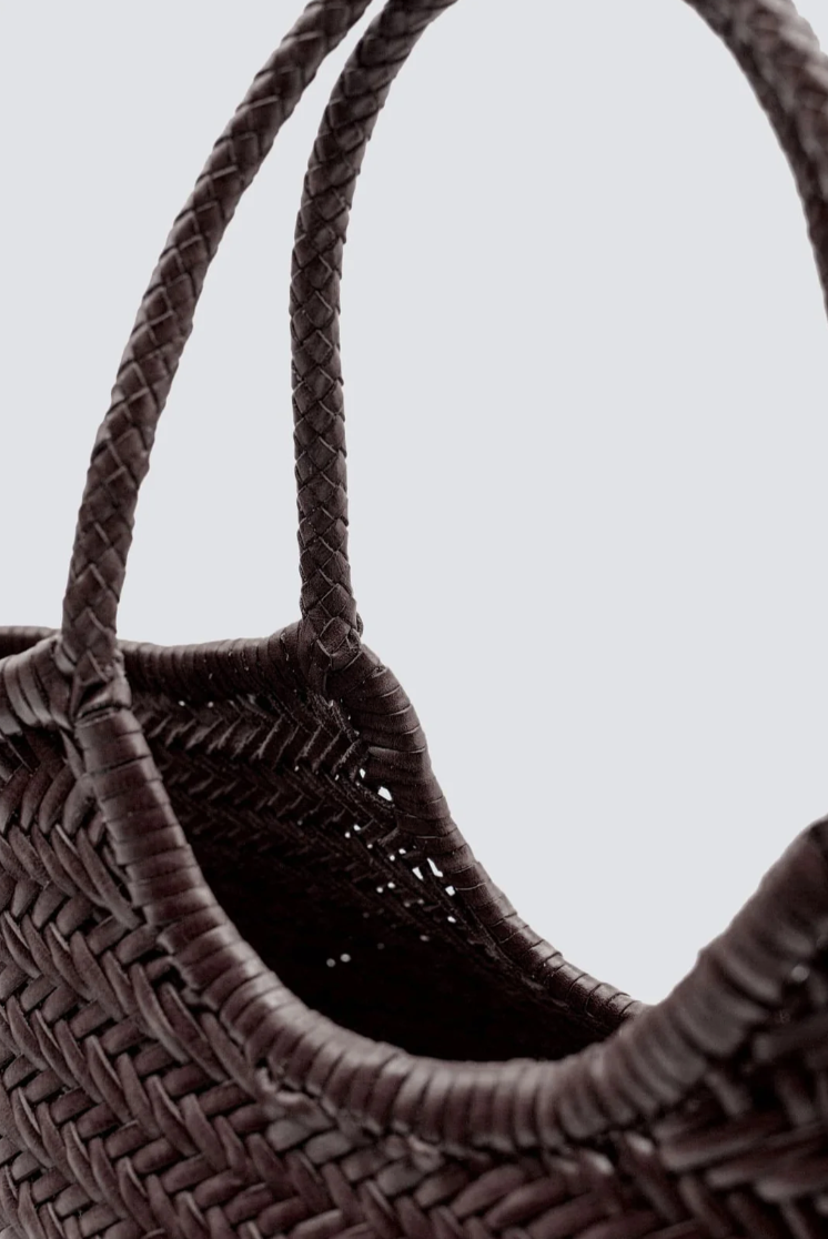 Inspiré de l’île ensoleillée du Massachusetts, le Nantucket est l’un des modèles emblématiques de la maison. Entièrement tressé à la main dans un cuir de veau de buffle souple, ce cabas spacieux à l’allure décontractée séduit par son tressage serré et ses anses tressées assorties.