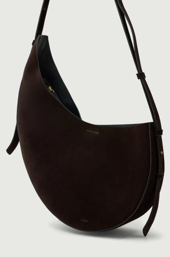 Le sac Winona de la marque Sœur en cuir prends une forme asymétrique et arrondie aux bords francs.