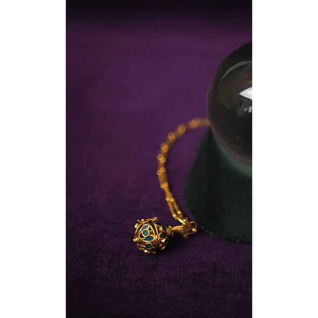 Idéal pour parfaire vos tenues quotidiennes ou pour apporter une touche d'éclat lors d'événements spéciaux, ce sautoir en laiton bain d'or, émail et Agate verte saura séduire par son charme et son élégance intemporels.