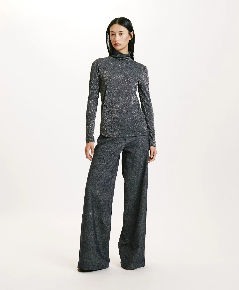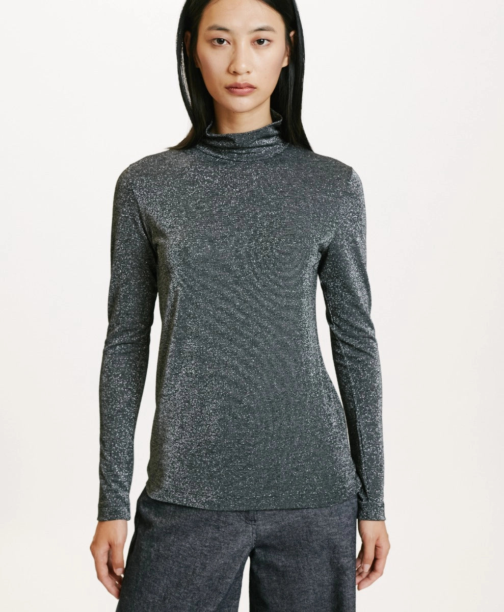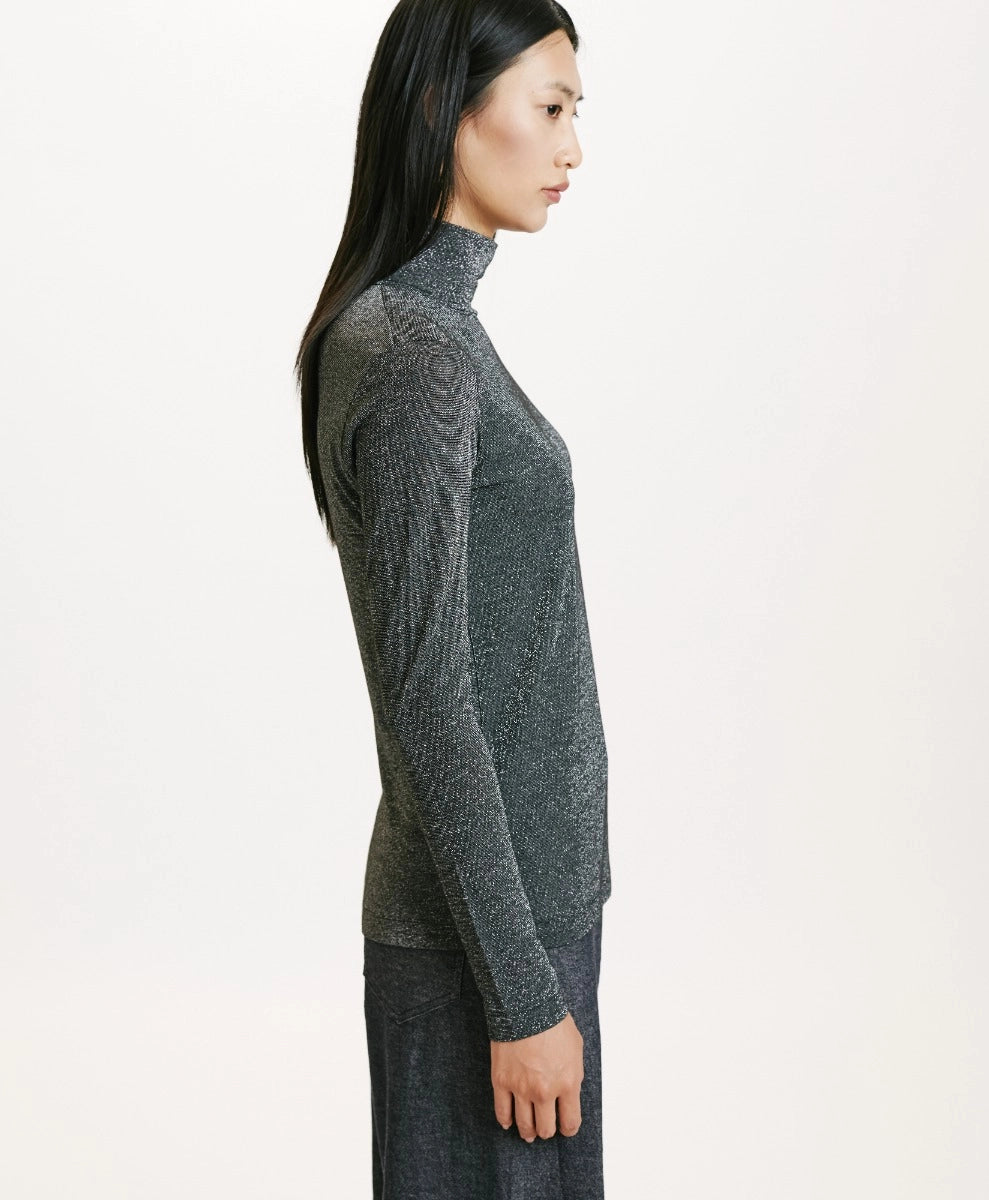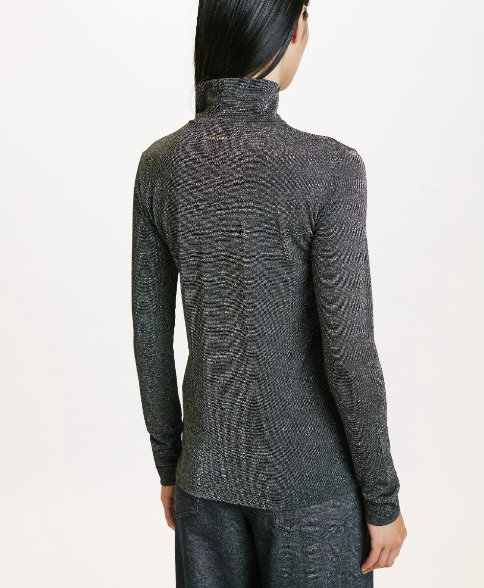 T-shirt à manches longues et col roulé en jersey lurex tout doux de la marque italienne Momoni.