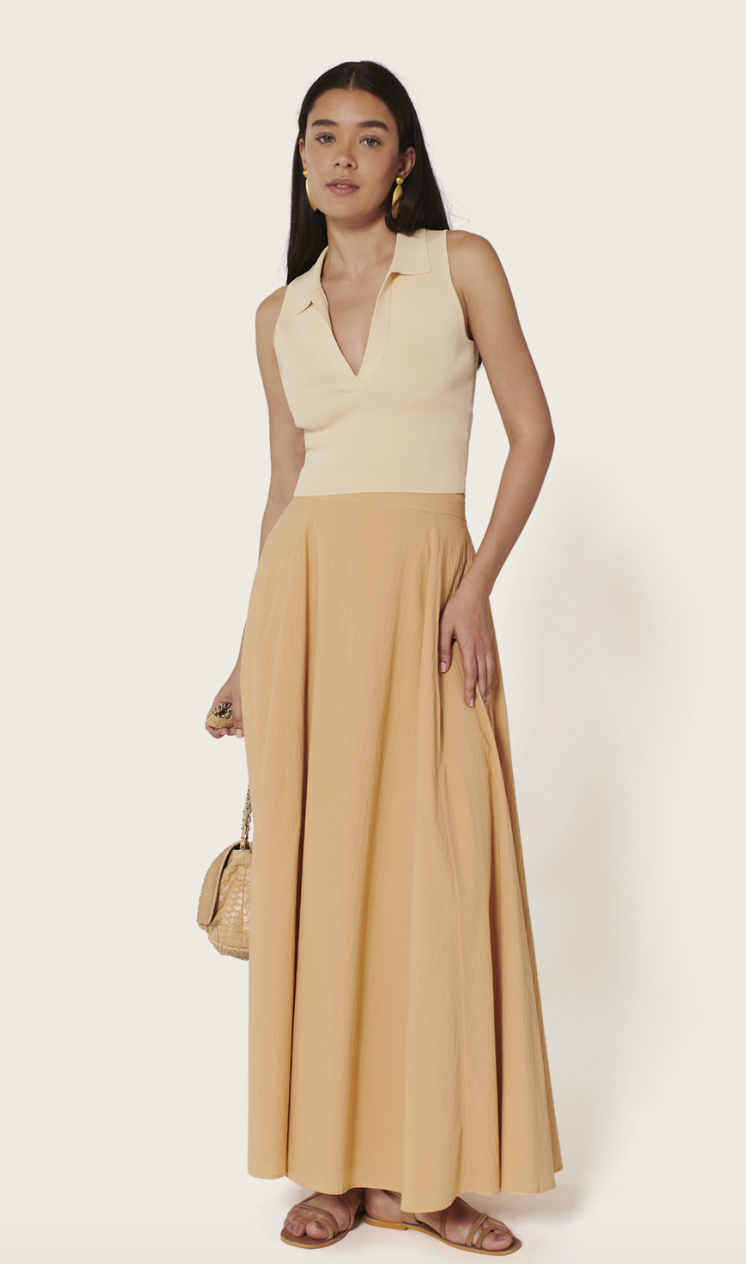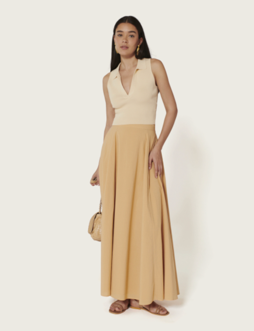 Top Roland en matière tricotée et stretch, qui illie confort et style, inspiré du polo. Col sans pied de col, emmanchures américaines inclinées, coupe courte.