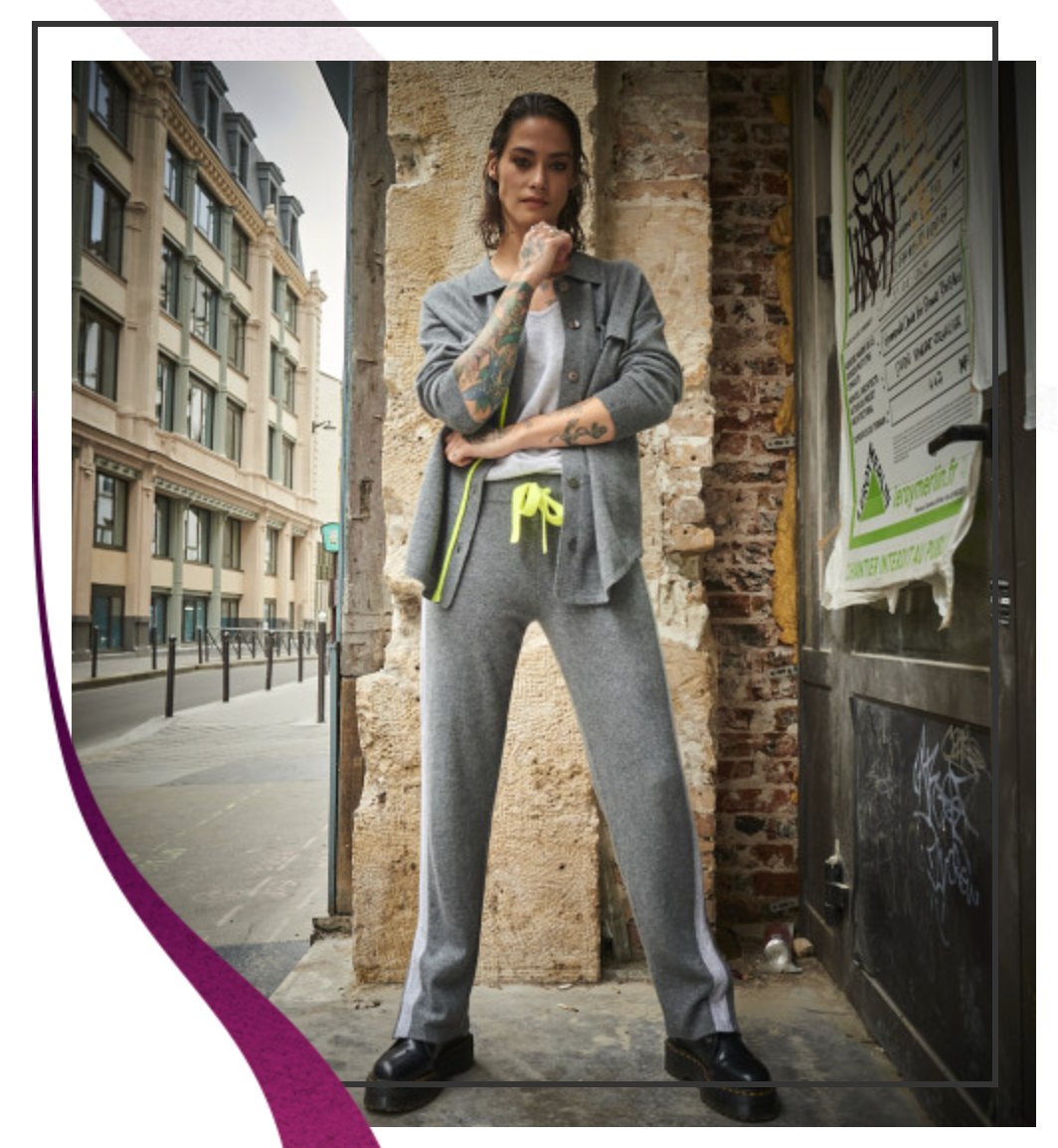 Chemise cachemire à col, boutonnage classique. Inscription "Game Over" en intarsia au dos. Poches à l'avant.