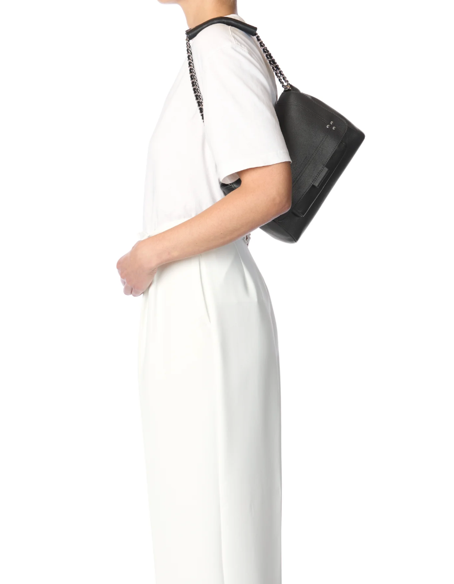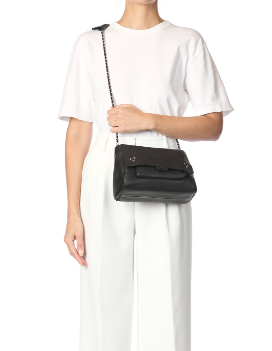 Le Lulu M de Jérôme Dreyfuss est un sac besace élégant et robuste, idéal pour un porté épaule ou croisé. Il est doté d'une bandoulière en chaîne et cuir, modulable en deux longueurs, et se ferme à l'aide d'un rabat avec fermeture aimantée. Le sac s'organise en un grand compartiment central, une poche zippée, ainsi qu'une petite poche sous le rabat et une autre à l'arrière. Un lien porte-clés à l'intérieur offre une fonctionnalité supplémentaire.