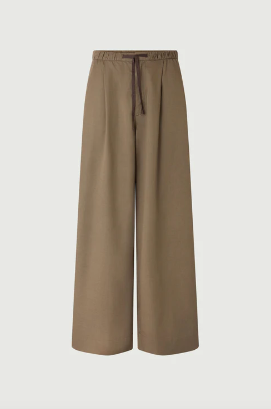Pantalon Hugues fluide coupe droite légèrement évasée. Ouverture avec lien, zip et crochet. Deux poches italiennes devant, deux grandes pcohes plaquées au dos. La mannequin mesure 1.78 m et porte une taille 36.