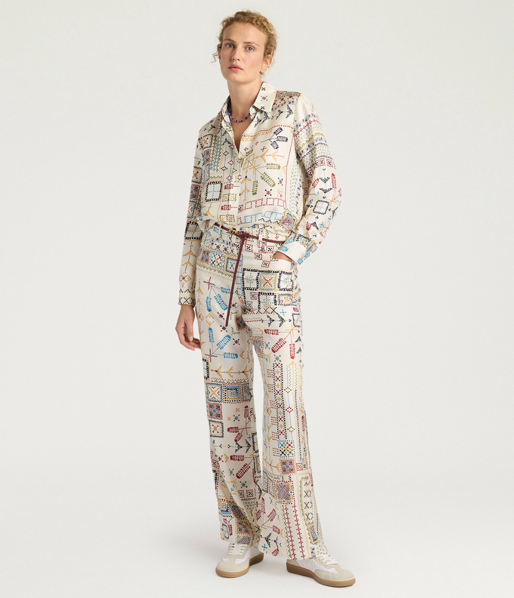 Pantalon Ortiz Imprimé Multicolore Crème - Momoni
