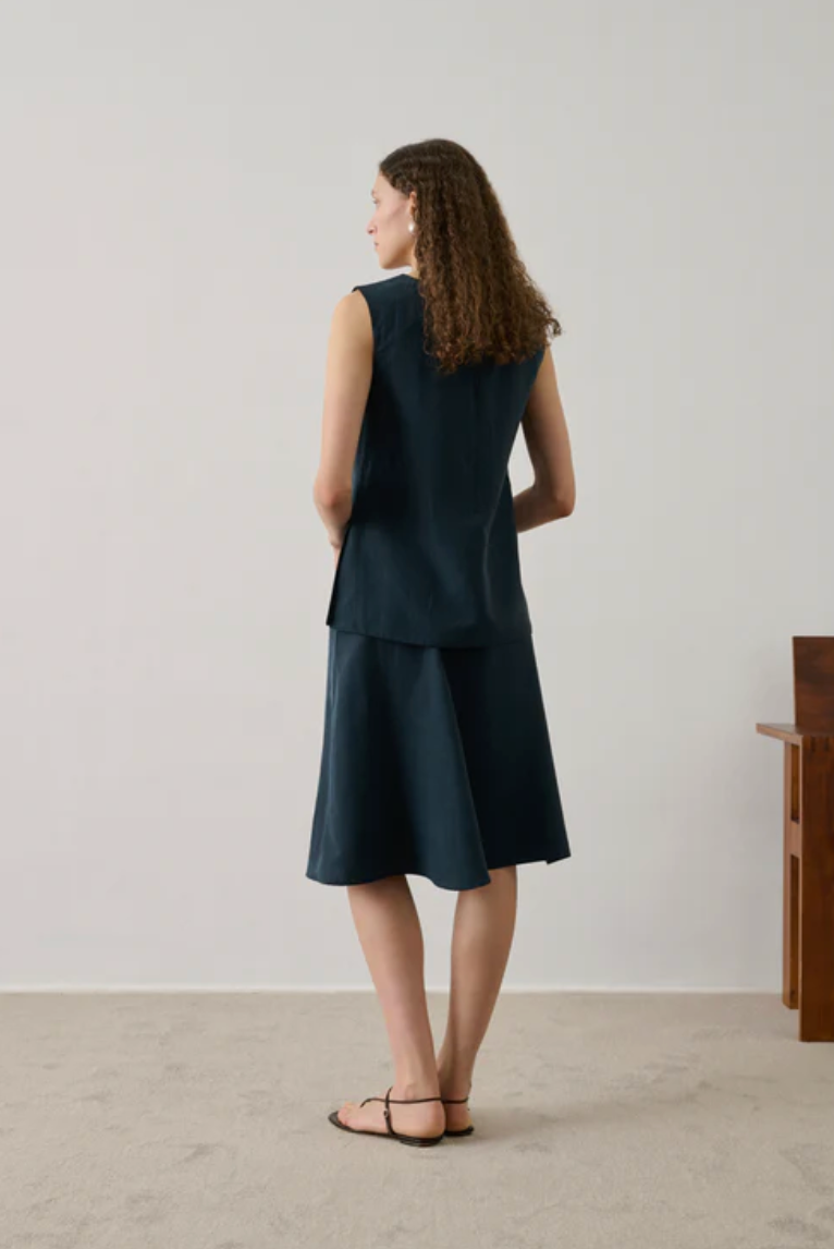 Poches plaquées poitrine, fentes côtés. Lyocell et lin flammé